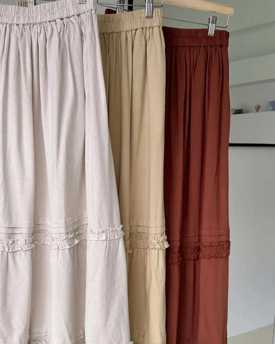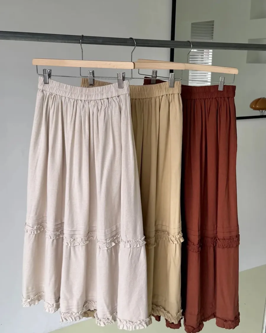 木耳邊鬆緊長裙