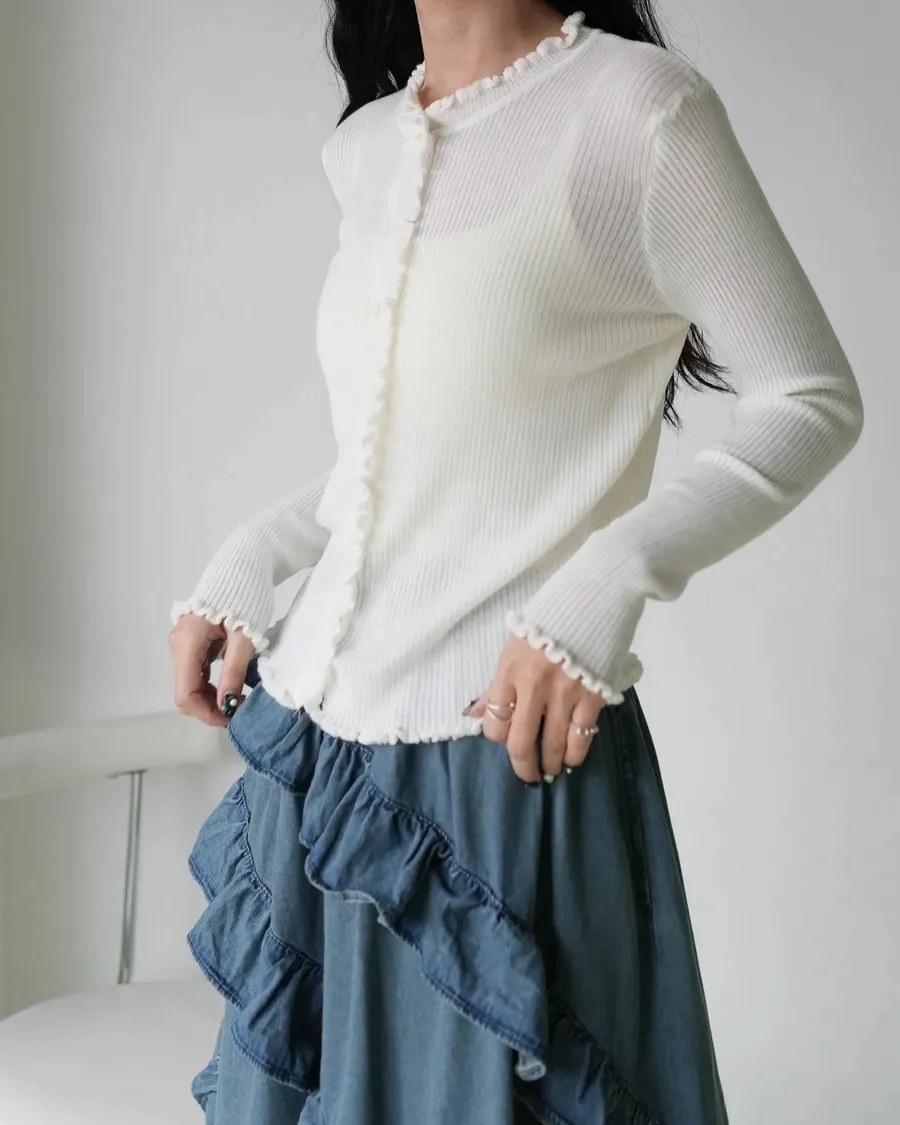 仙女款木耳邊針織上衣