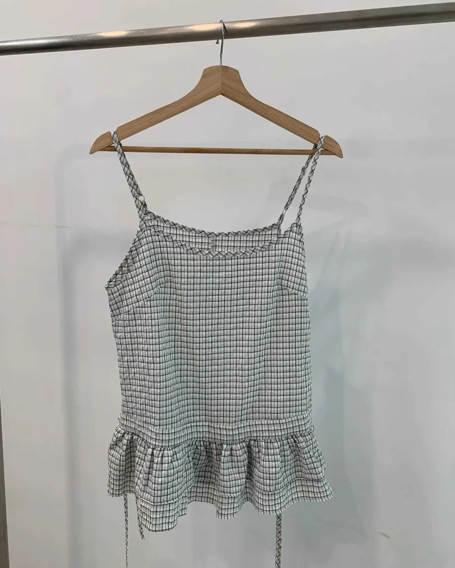 格紋收腰吊帶上衣