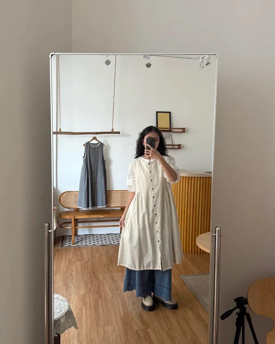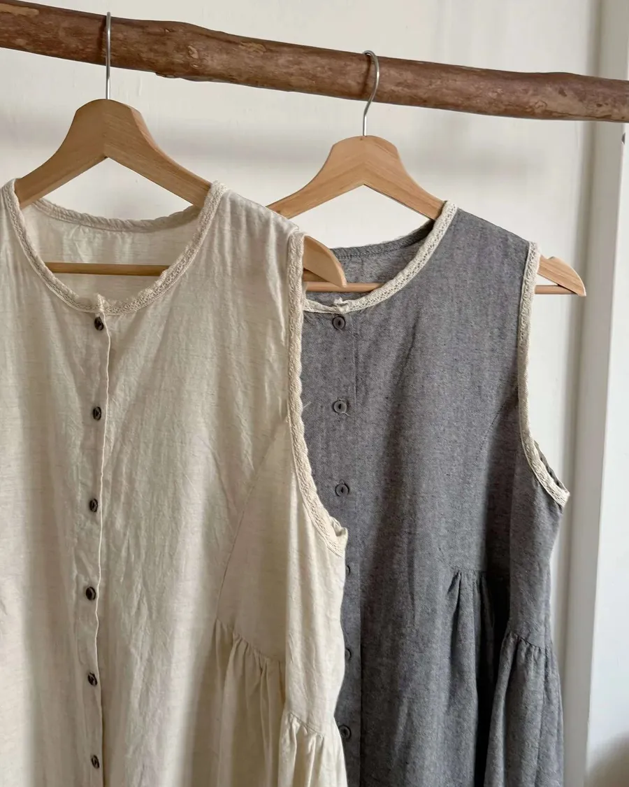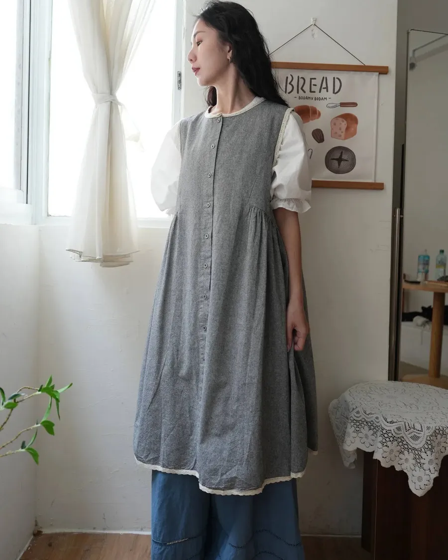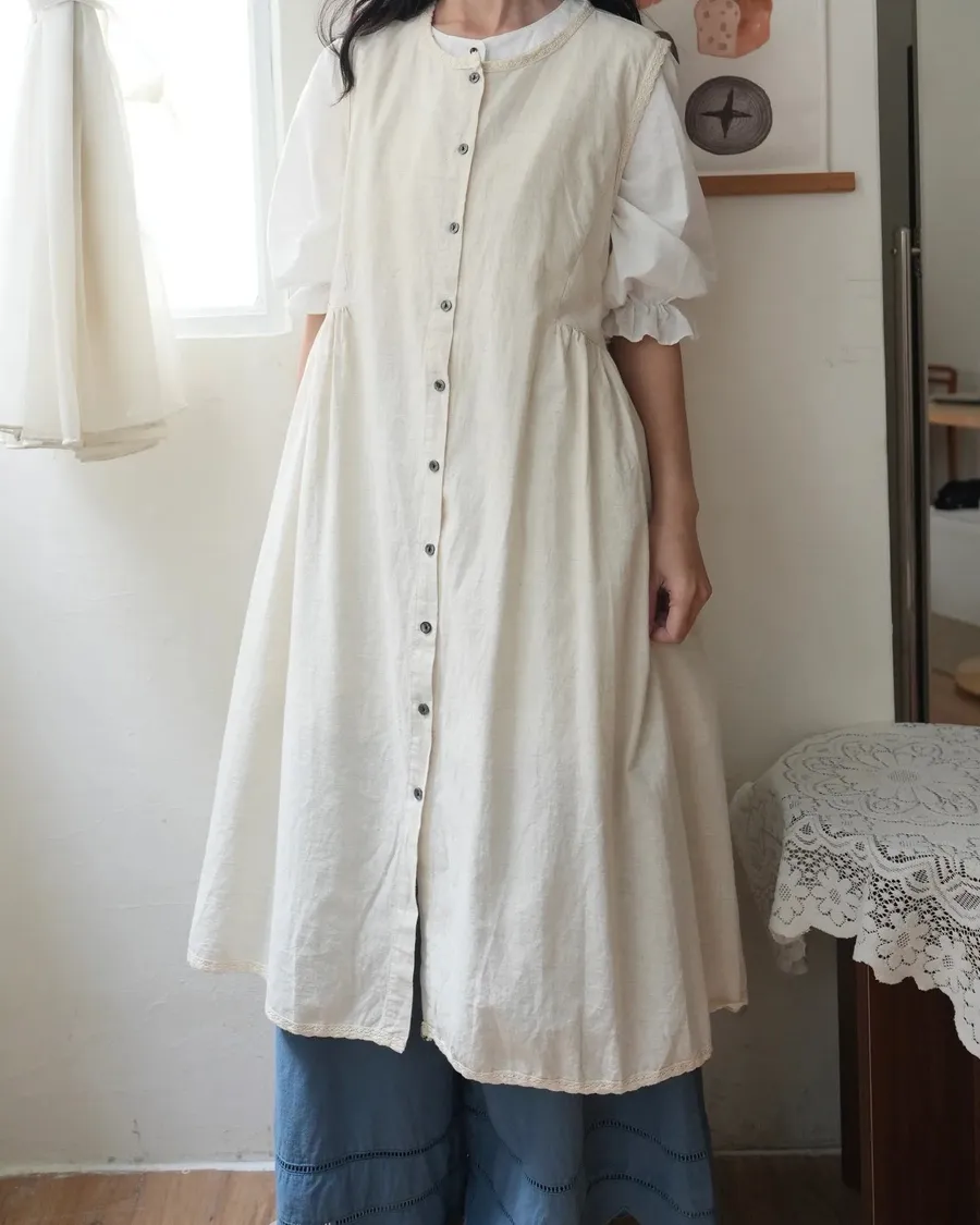 棉麻收腰長版背心外罩