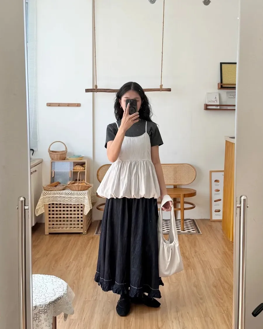 縫線花邊設計款牛仔散裙