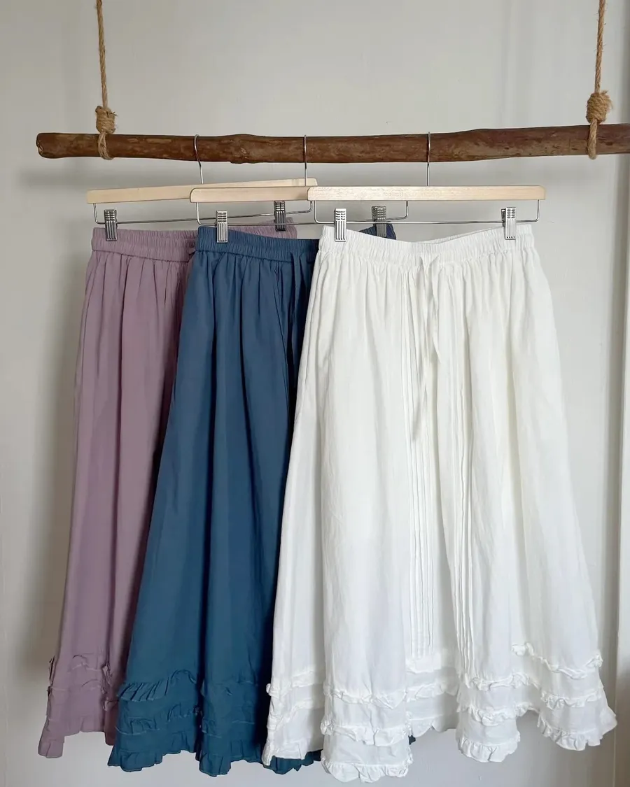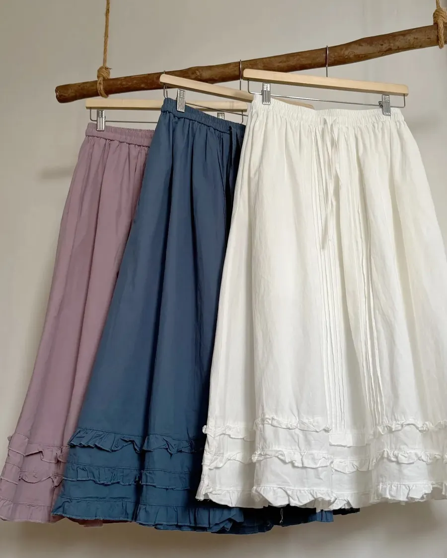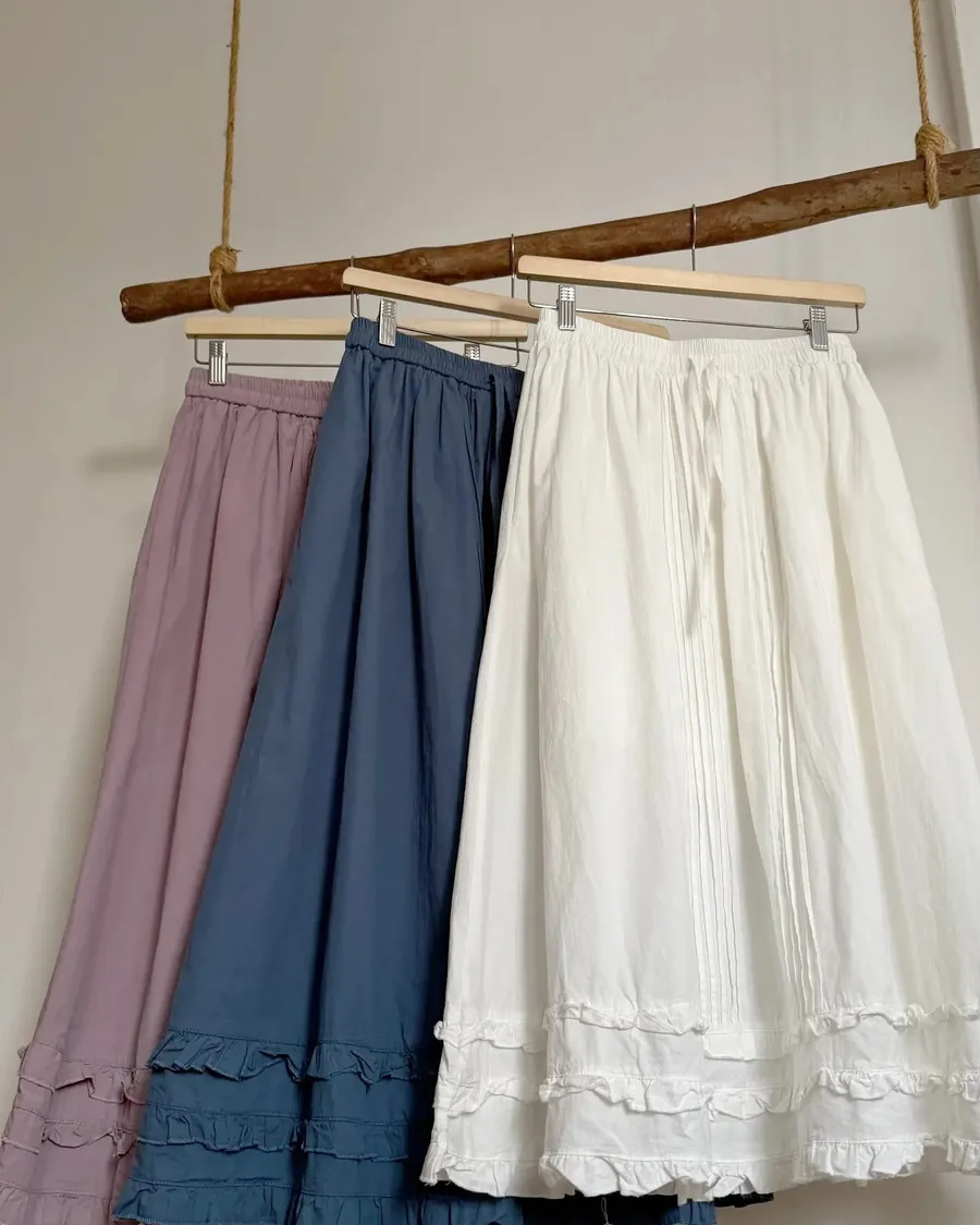 車邊花邊鬆緊腰修飾長裙