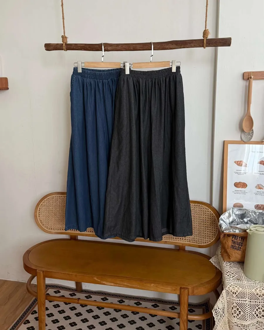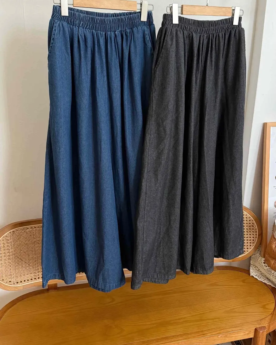 夏款百搭牛仔寬褲
