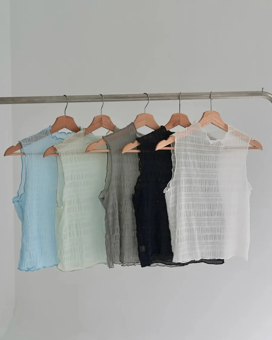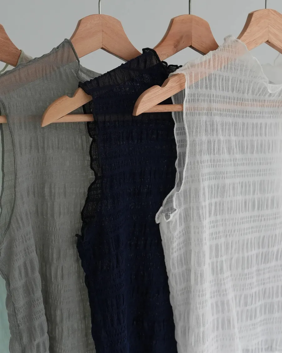 冰透感泡泡紋內搭上衣