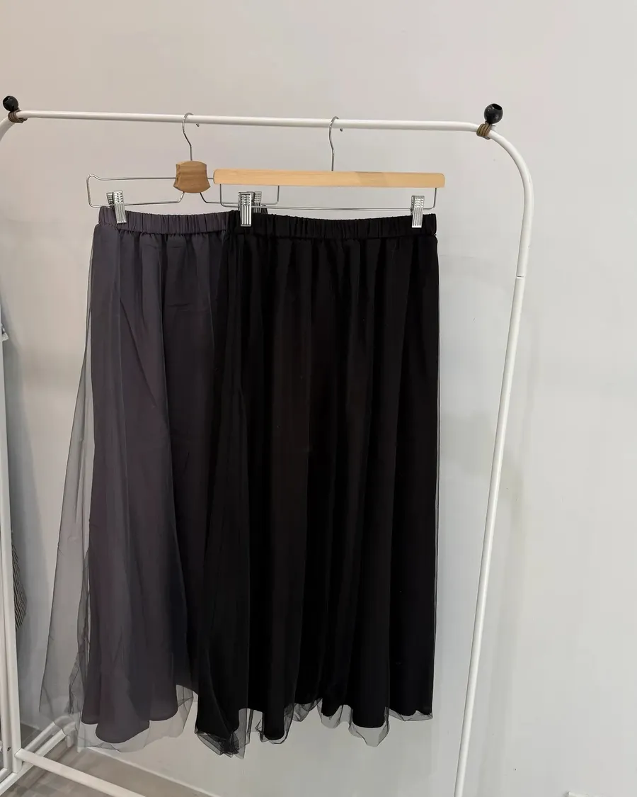雙層質感細緻網紗落長裙