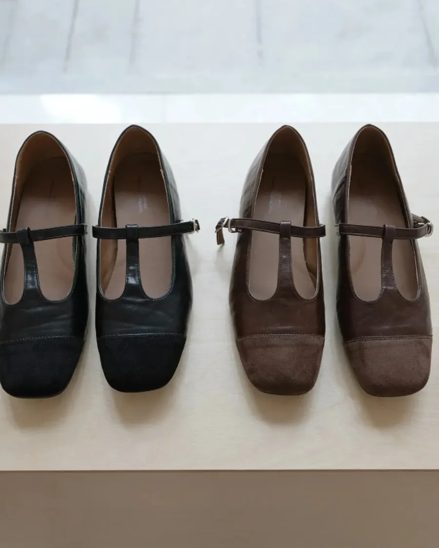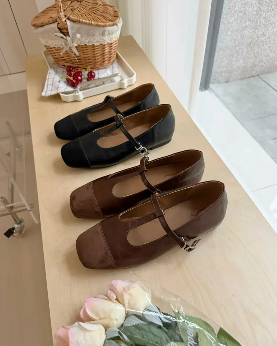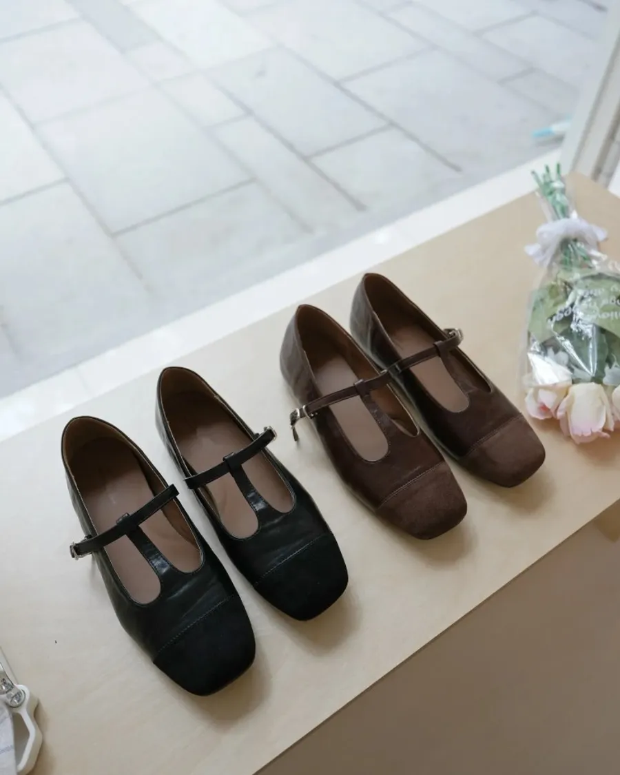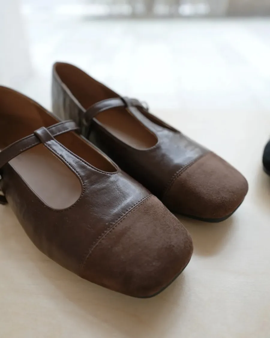 秋冬必收拼接瑪莉珍鞋