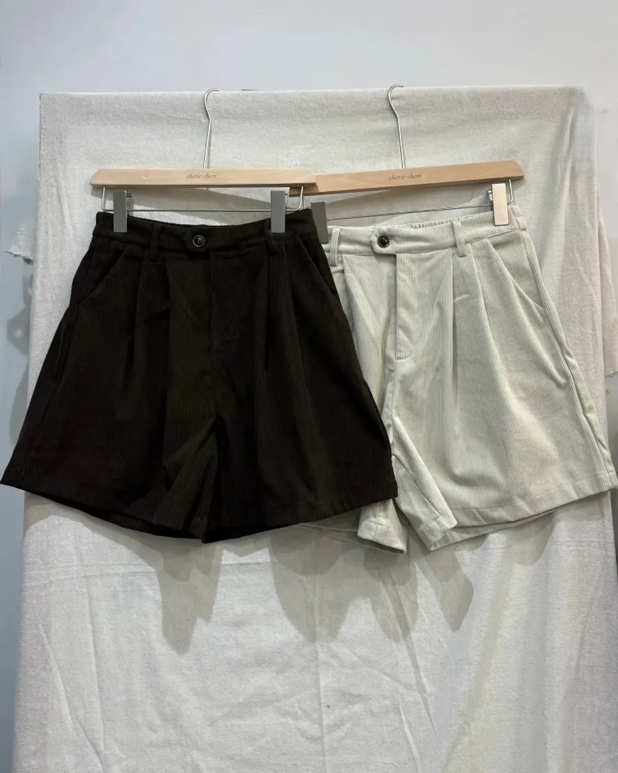 燈芯絨鬆緊腰圍短褲