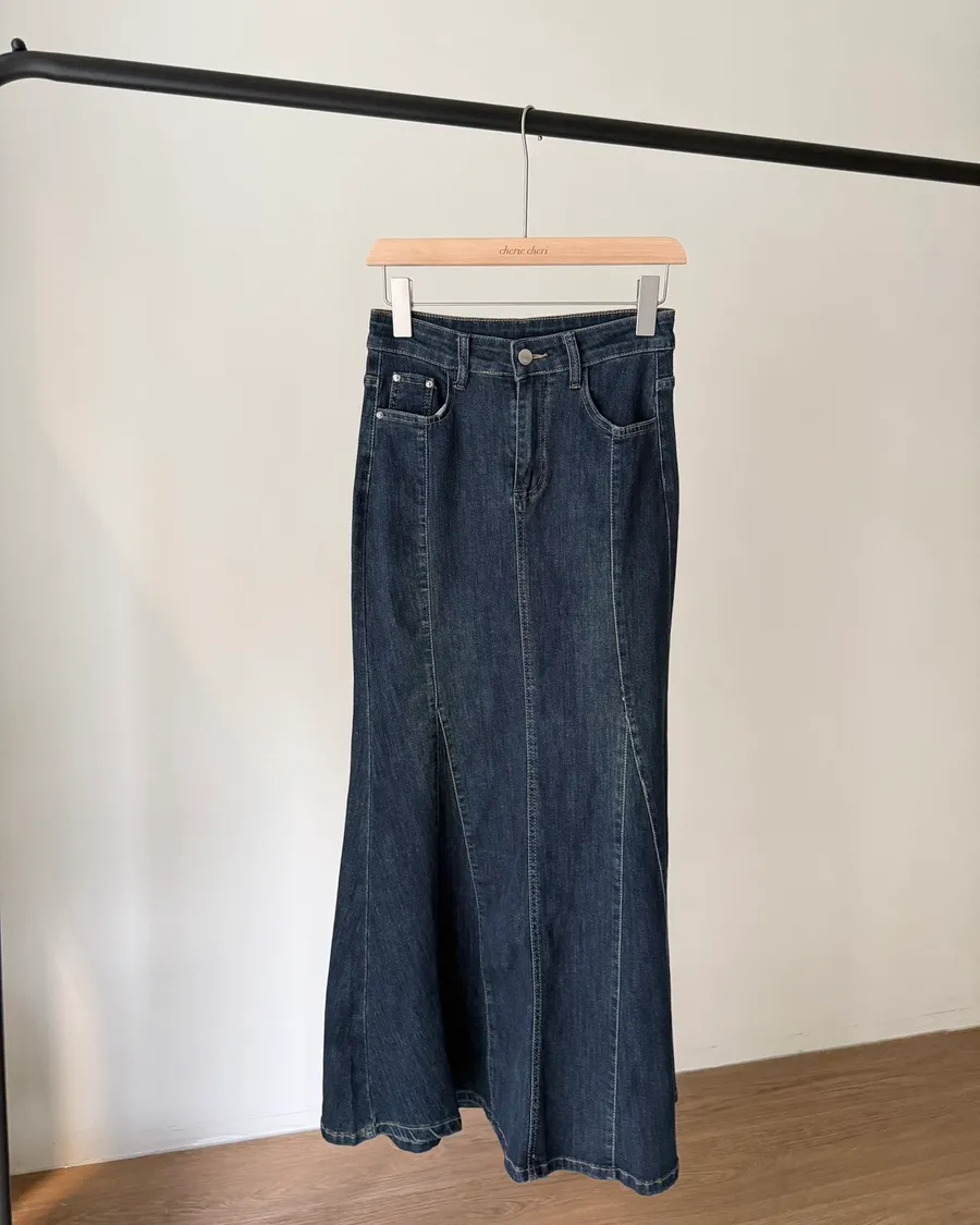 深丹寧質感魚尾長裙