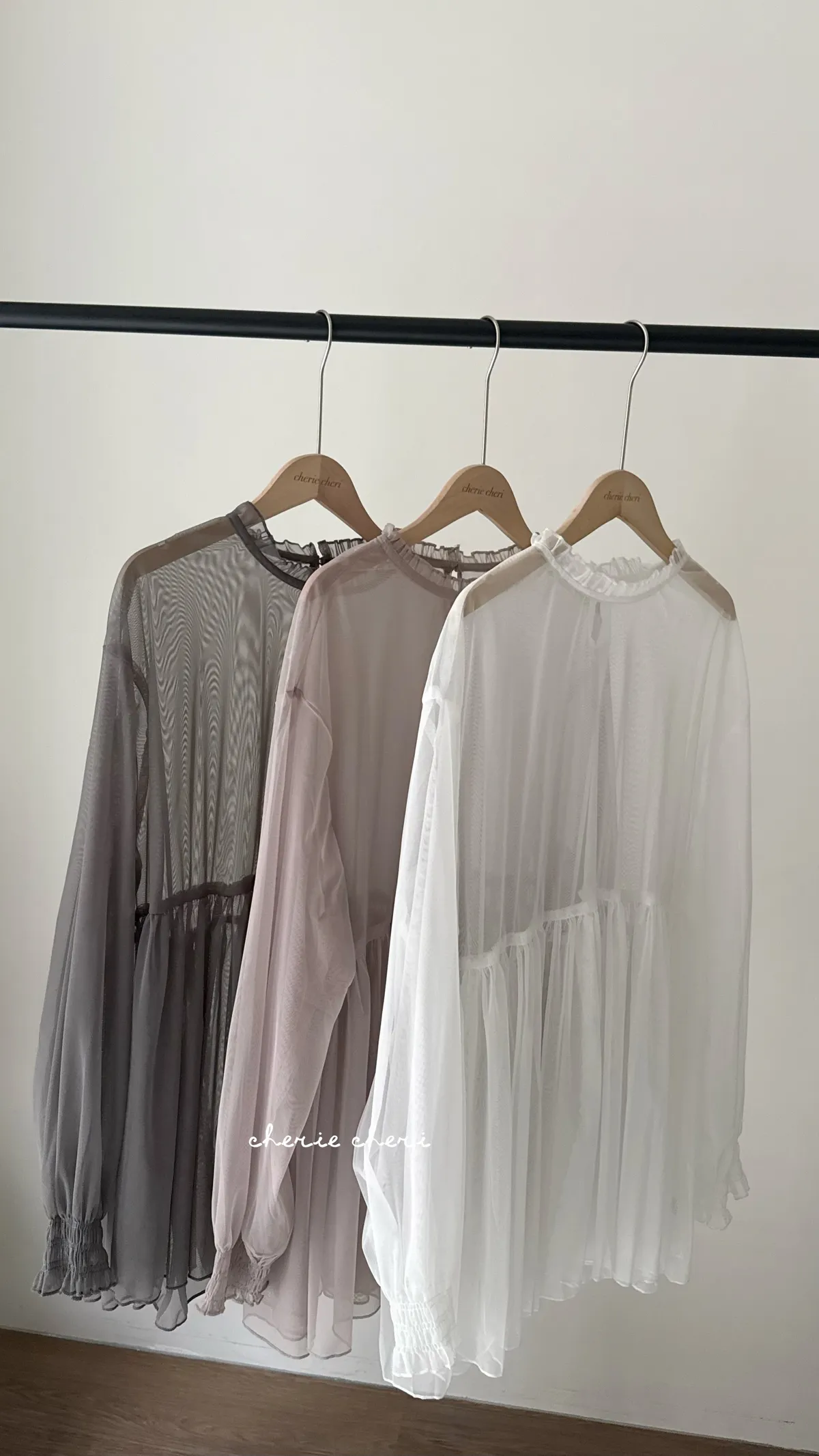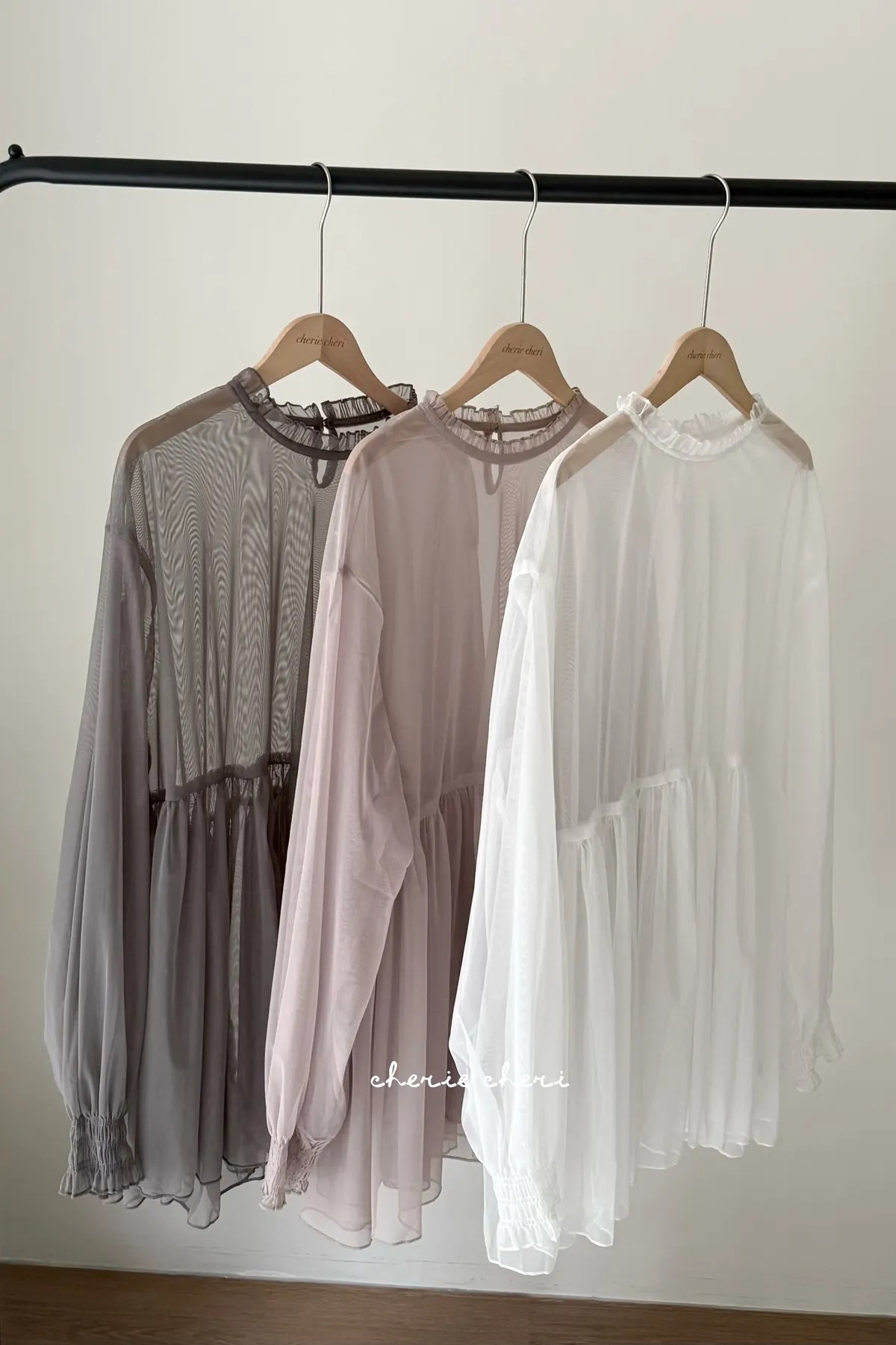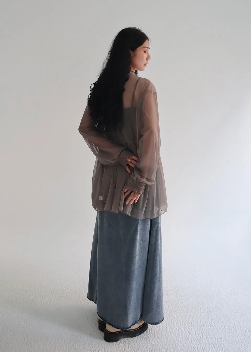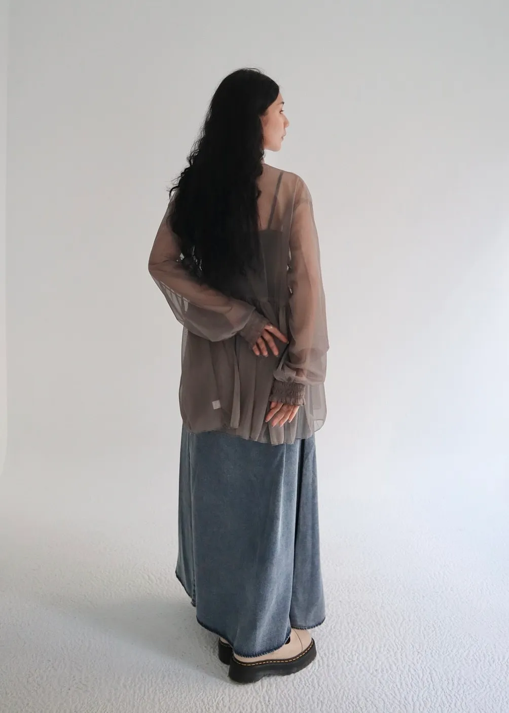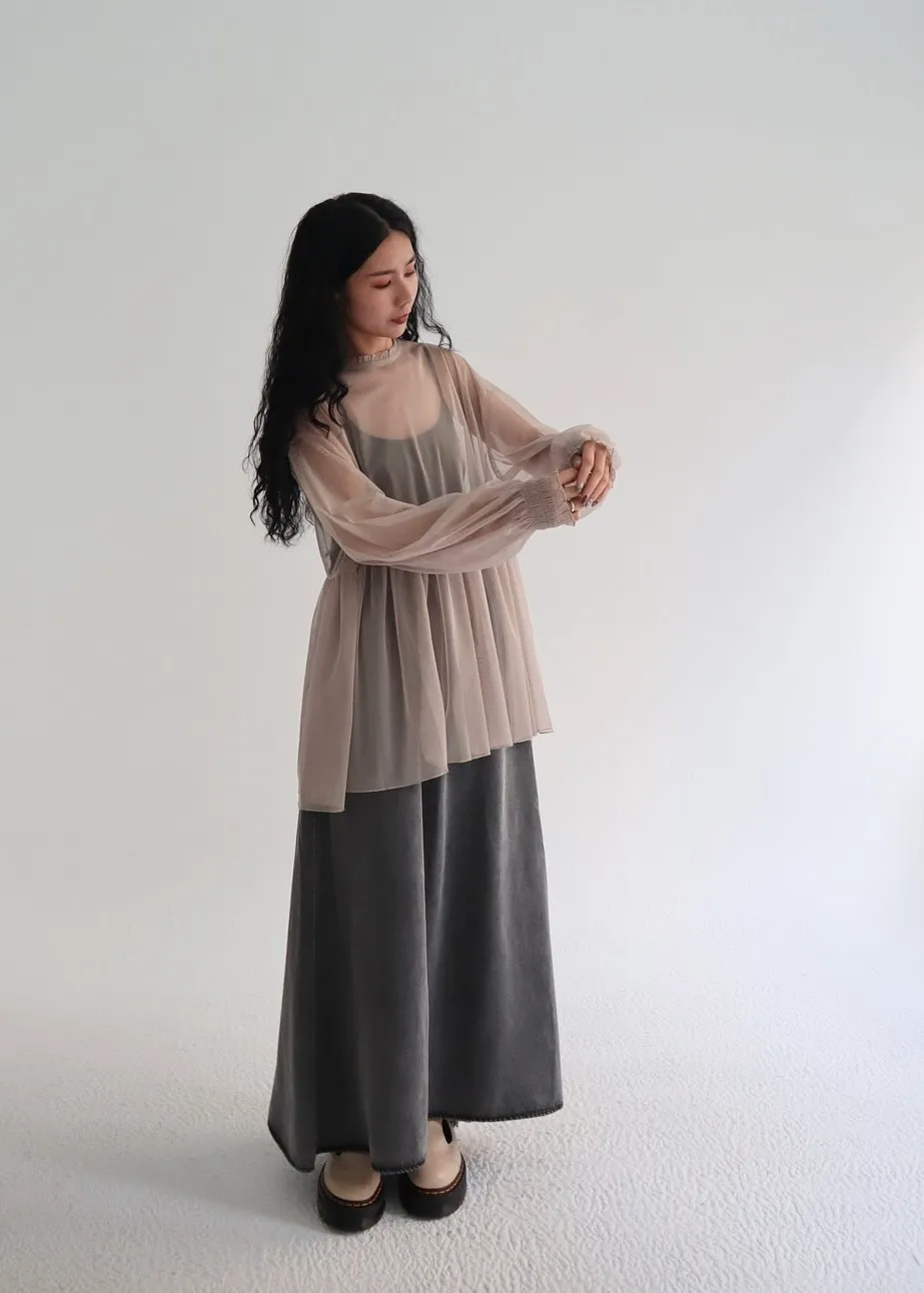 柔霧光澤木耳領透視網紗上衣 三色