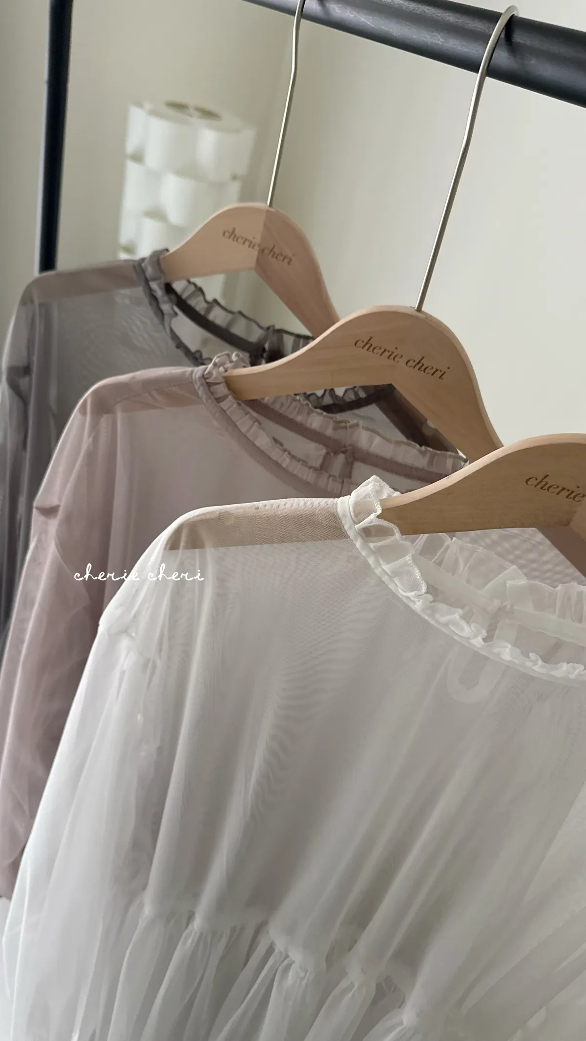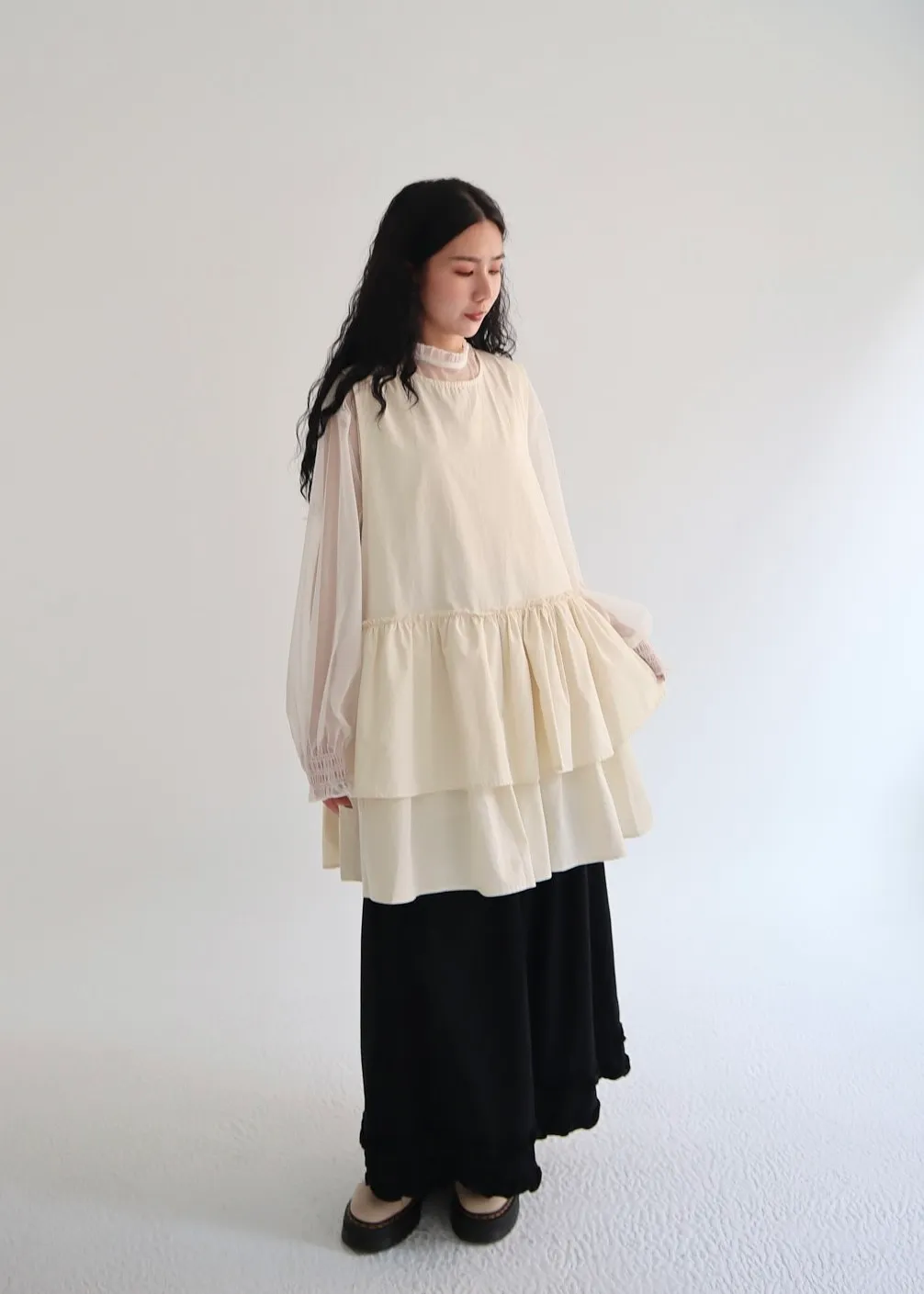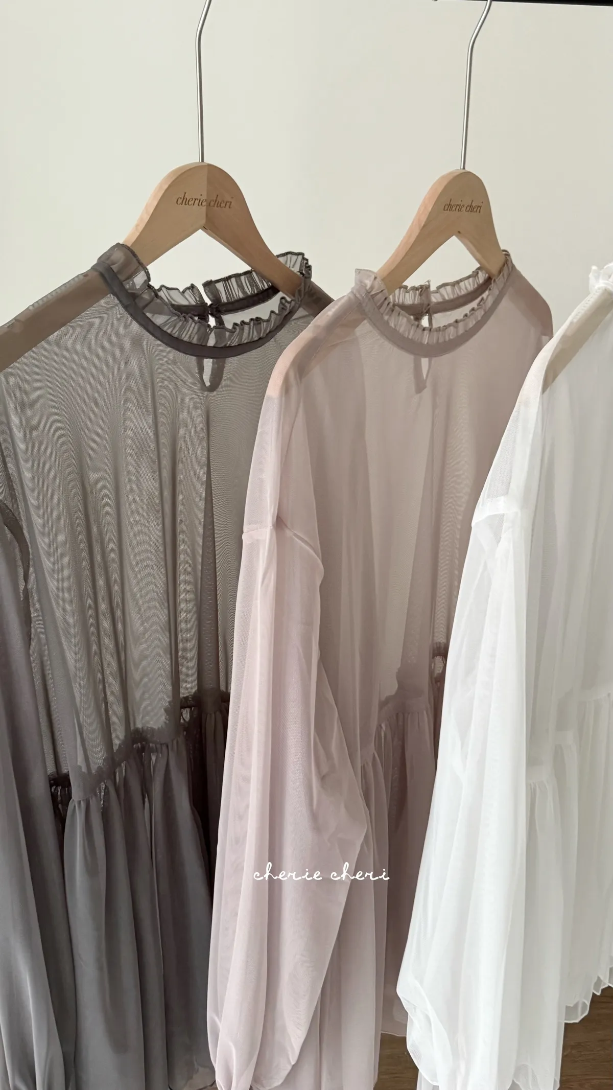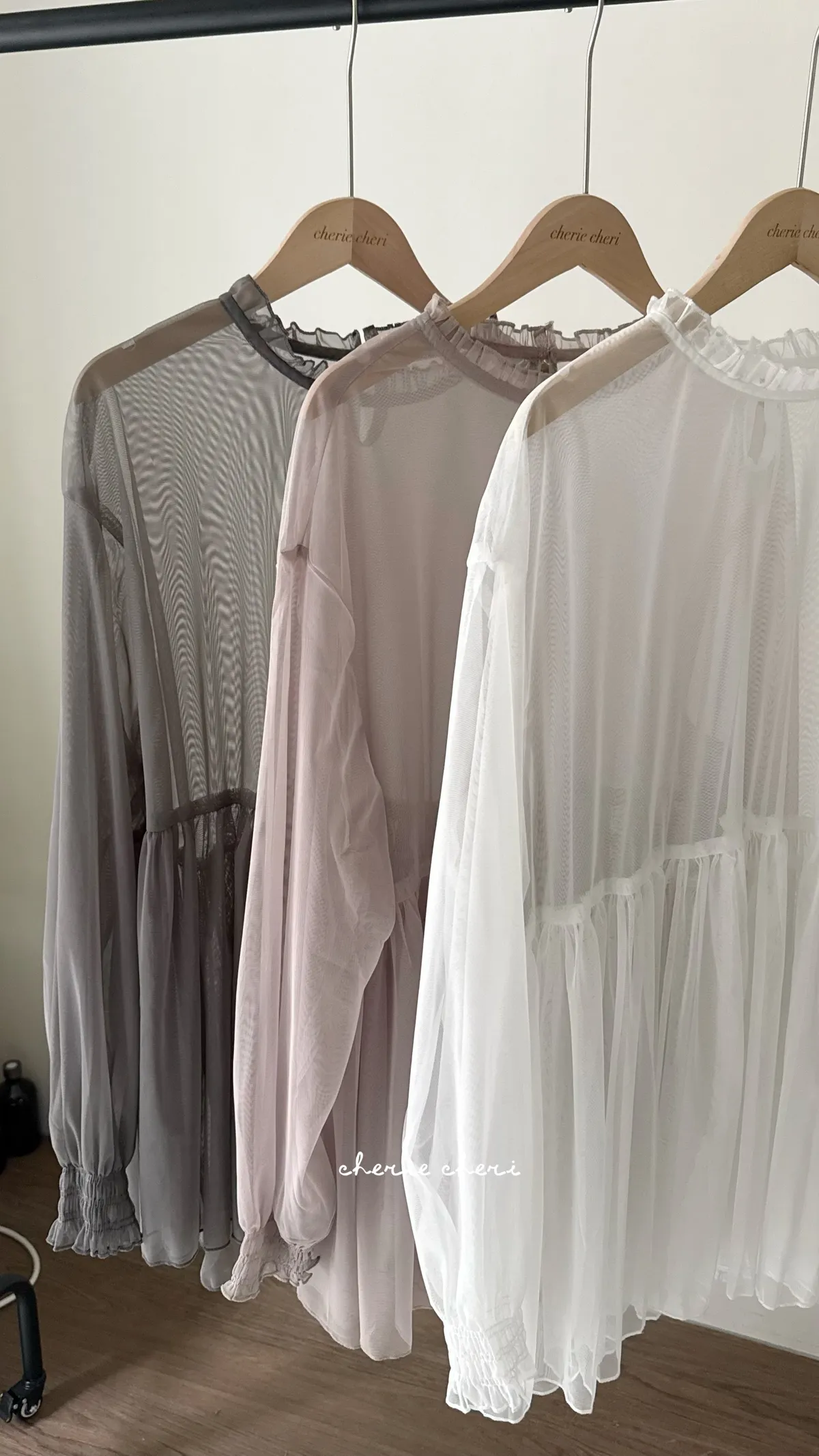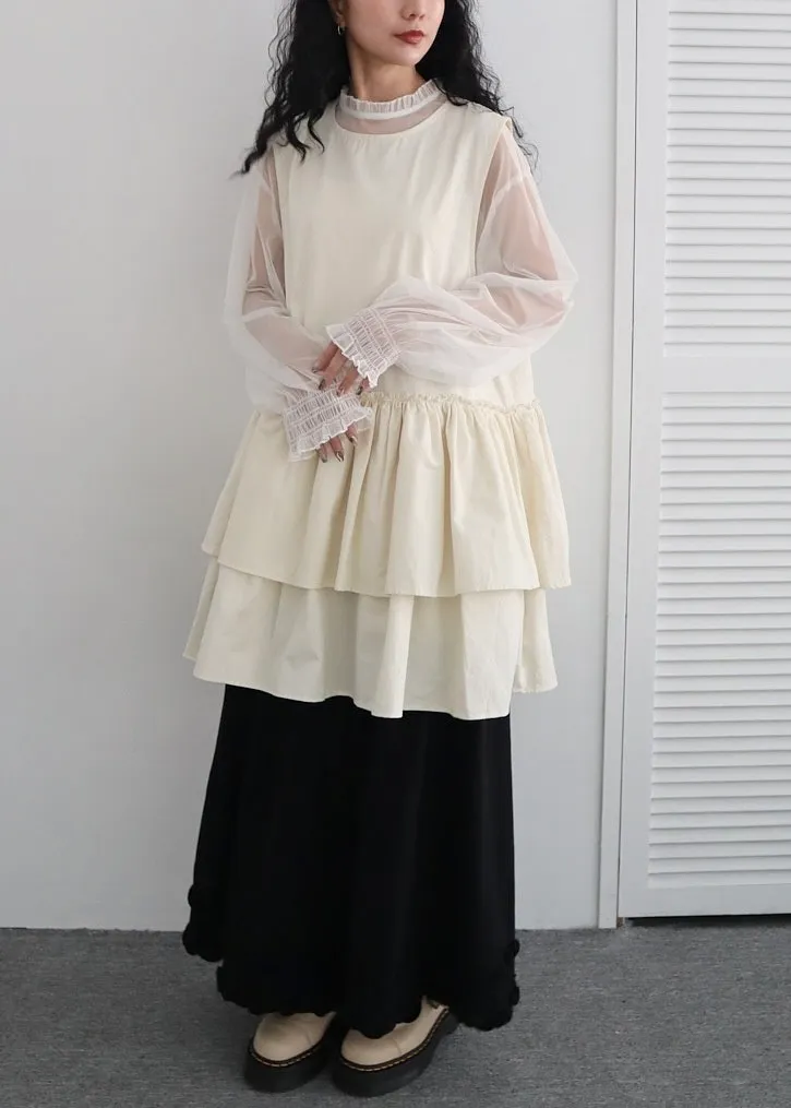 柔霧光澤木耳領透視網紗上衣 三色