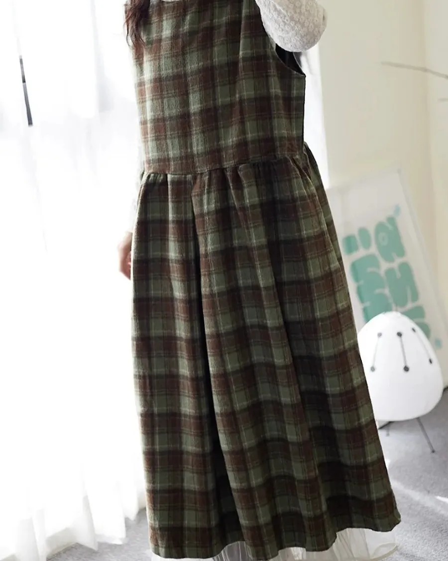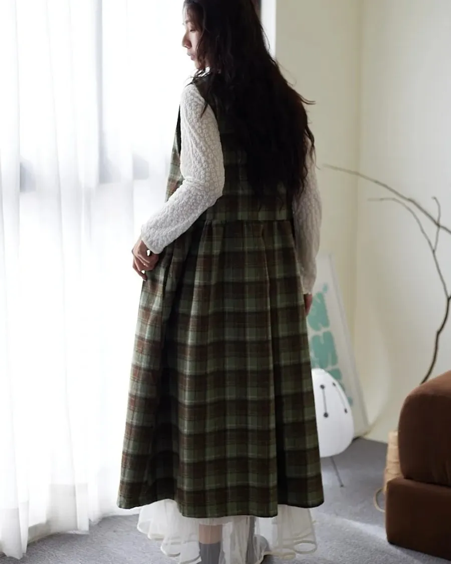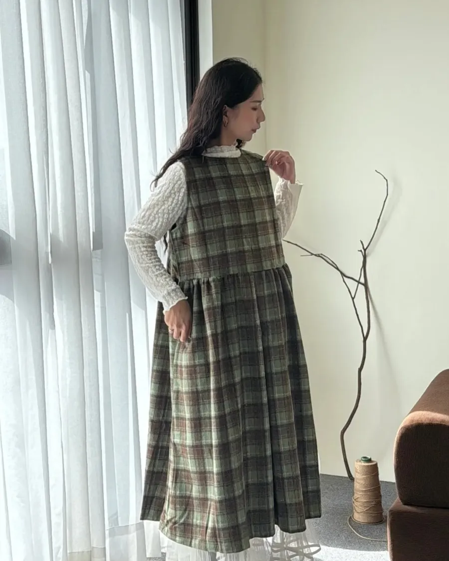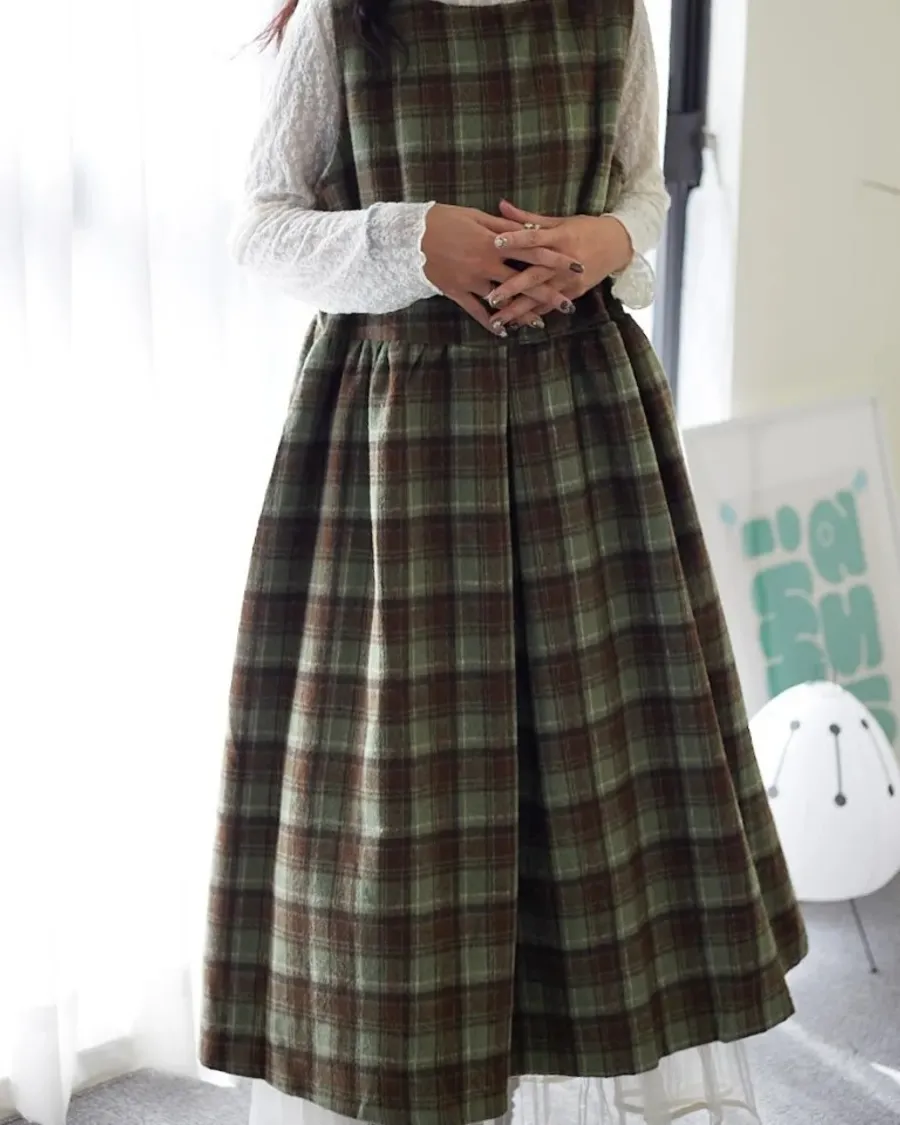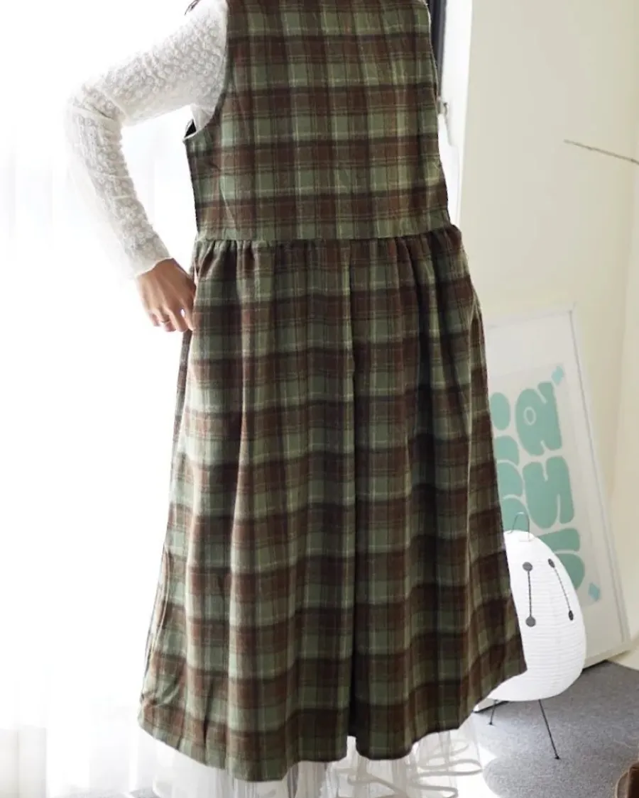 松木暮色格紋長版連身裙