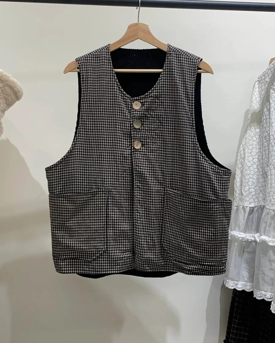 細格紋雙口袋鋪棉背心