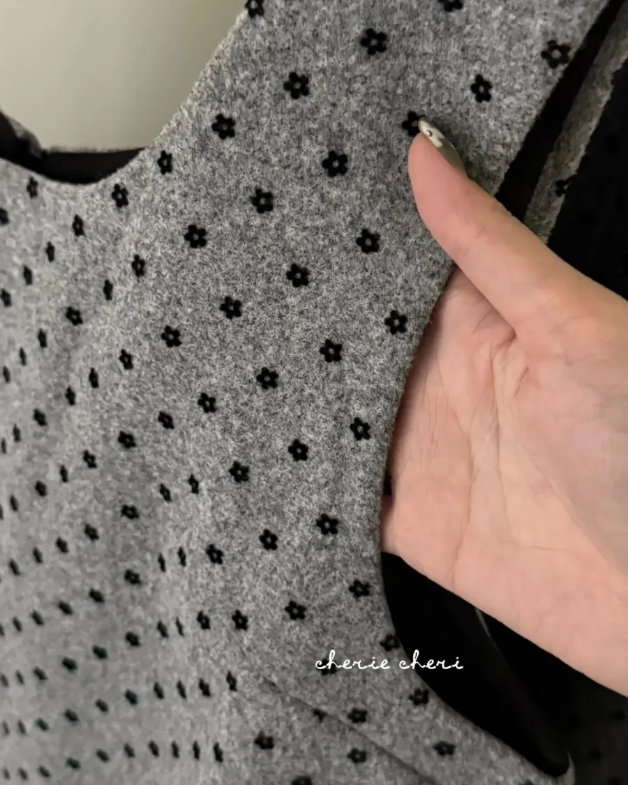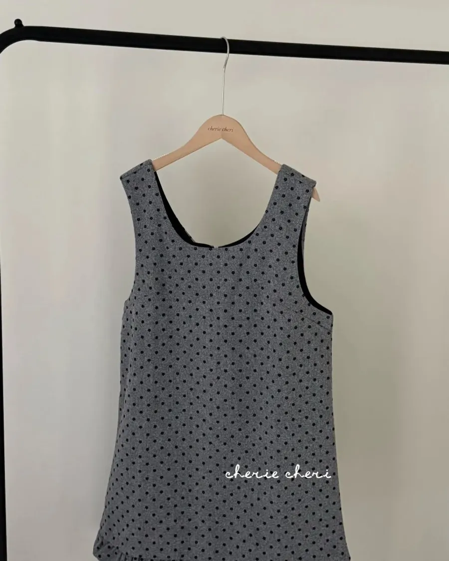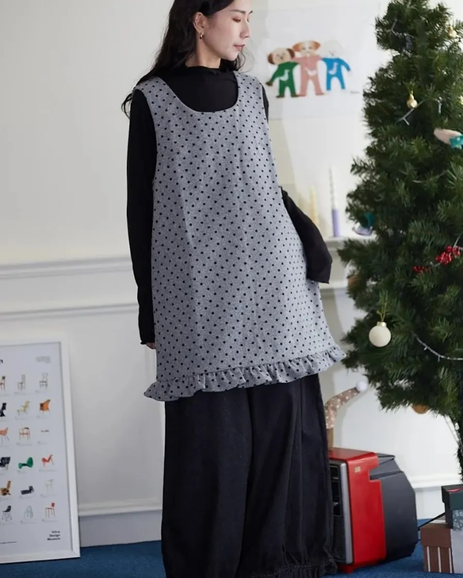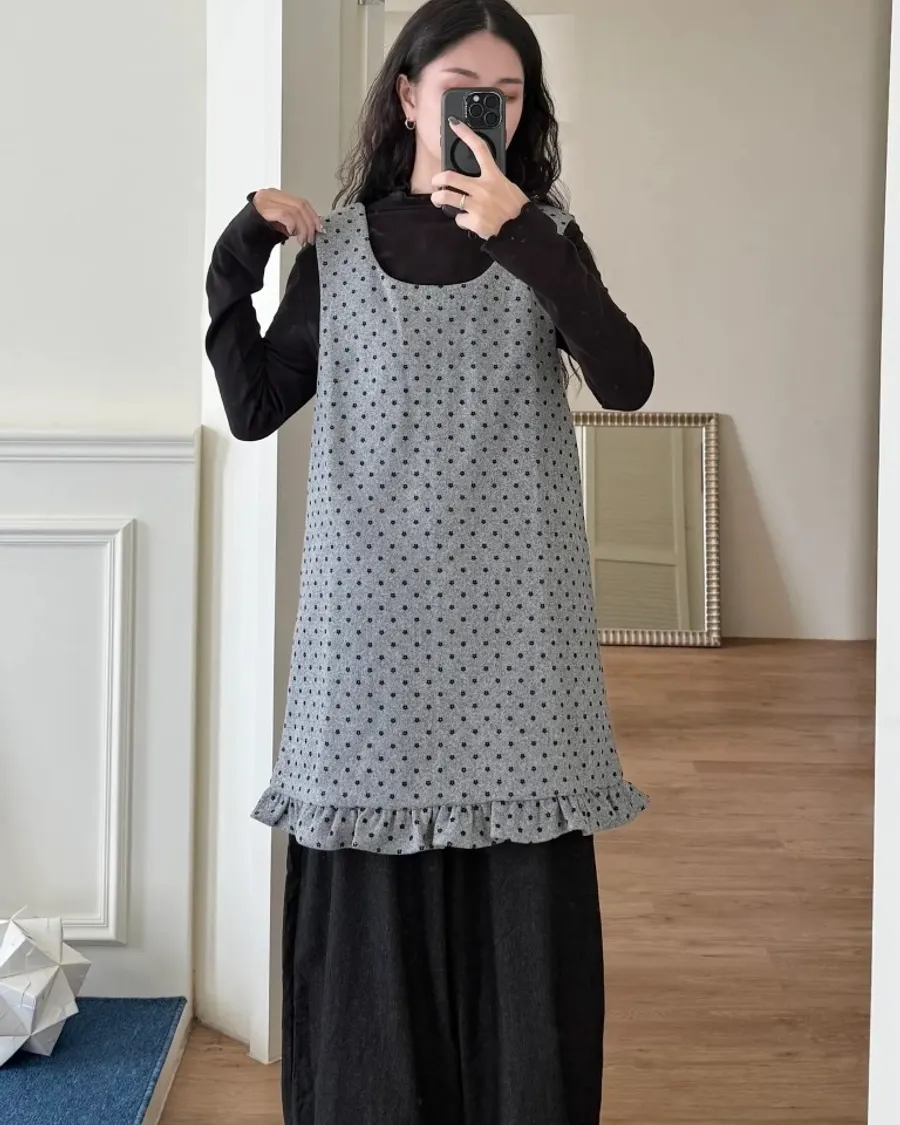 復古灰調碎花下擺抽皺長版背心