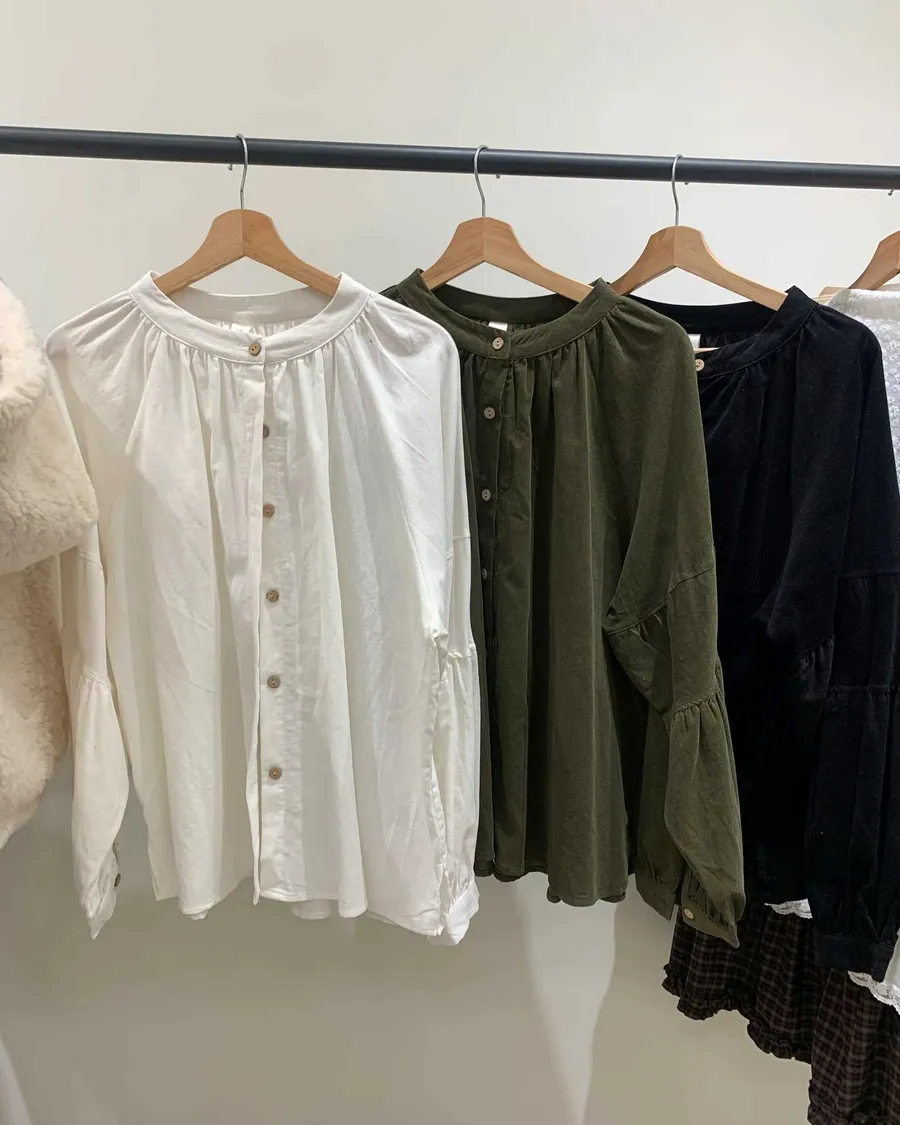 細燈芯絨圓領排釦襯衫