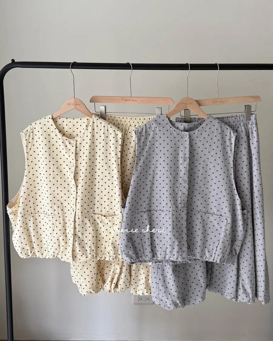 雲朵澎澎小花相隨套裝 兩色