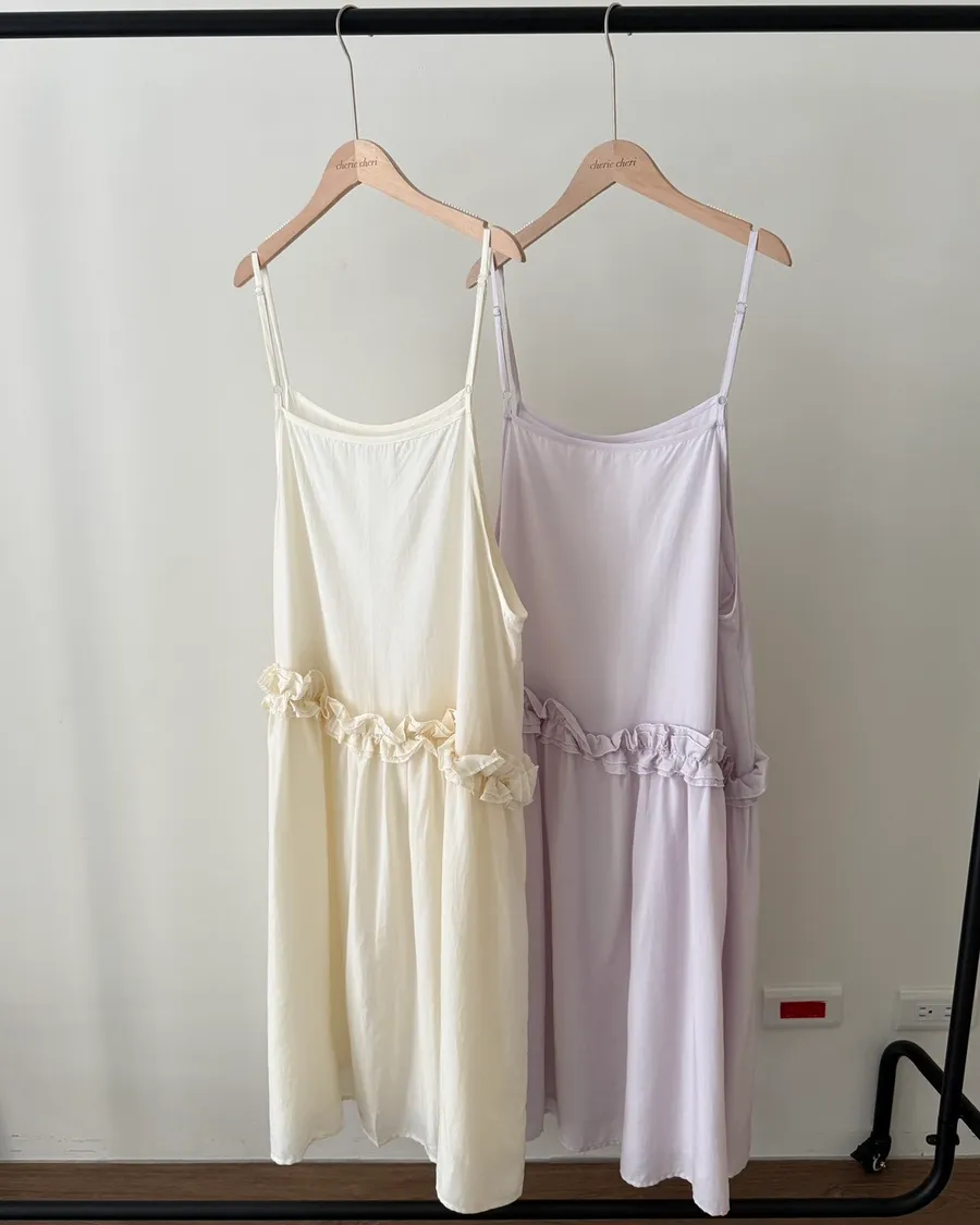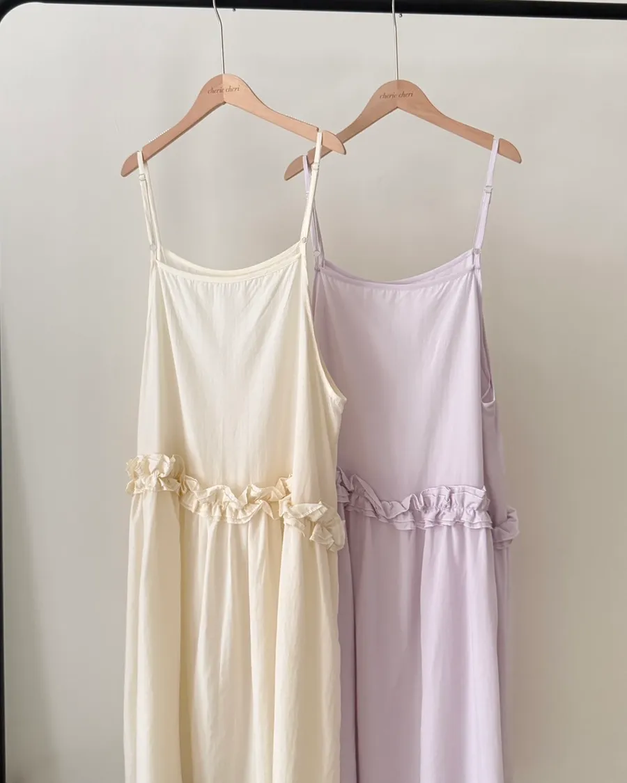 雲朵感荷葉腰頭細肩帶長洋裝 兩色
