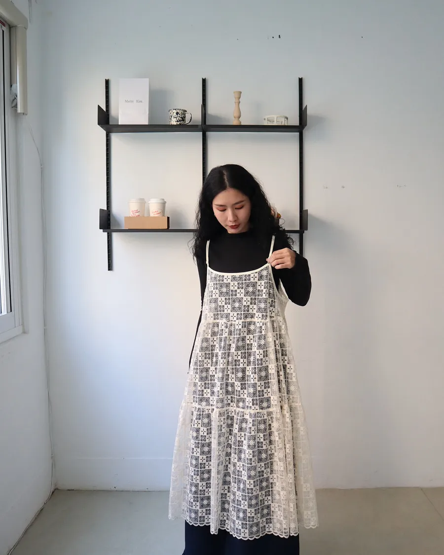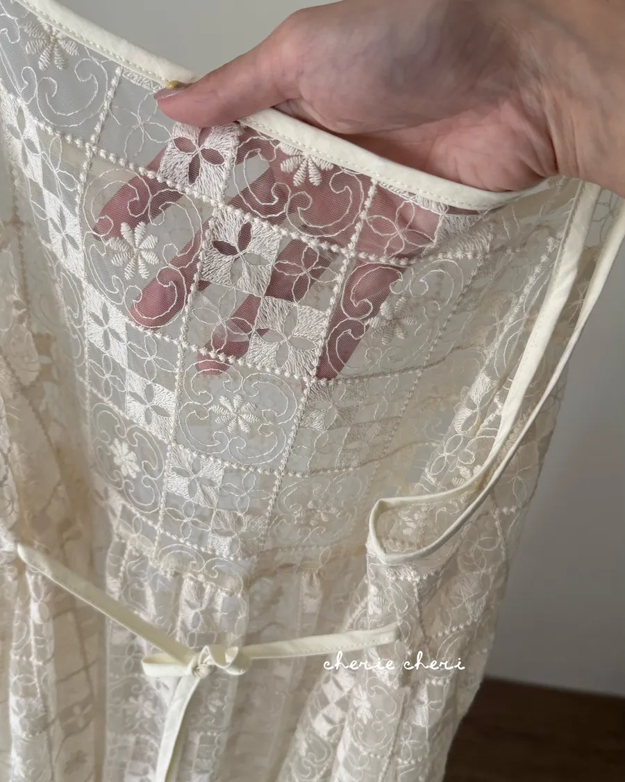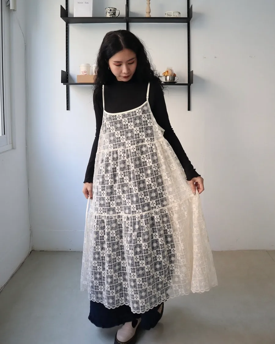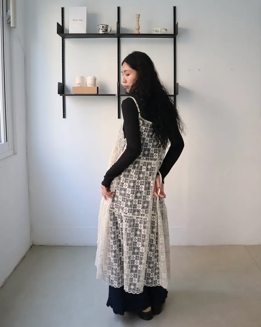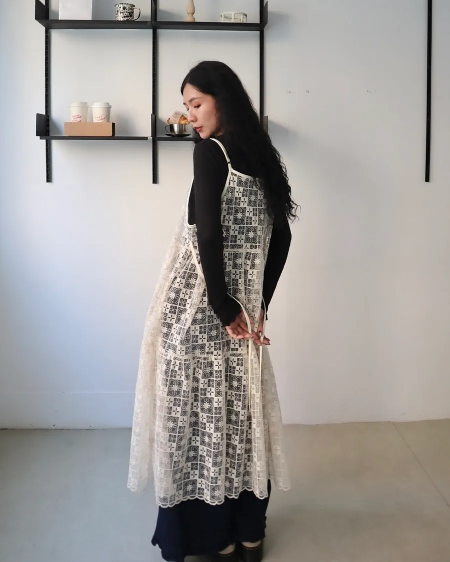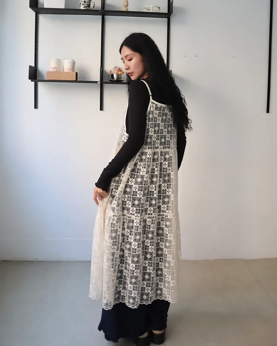 日系層次系幾何刺繡蕾絲罩衫