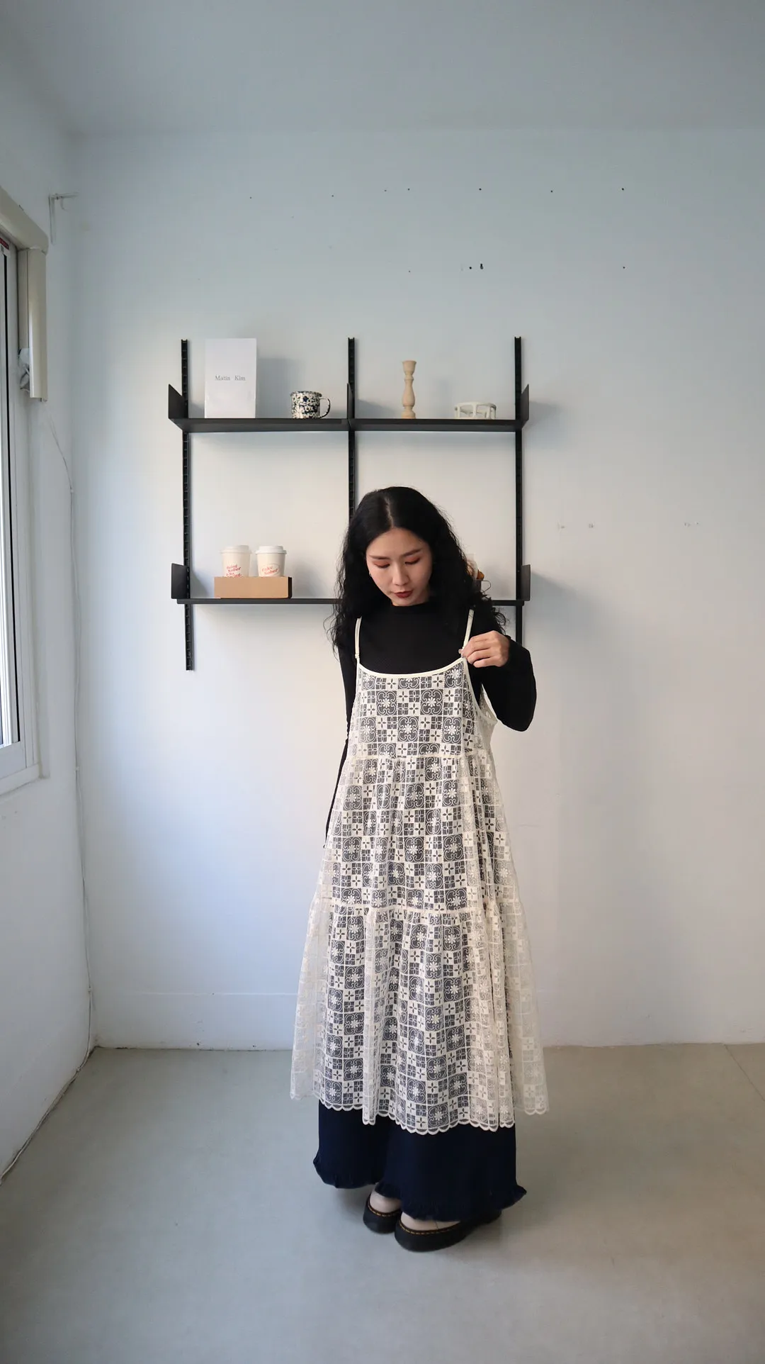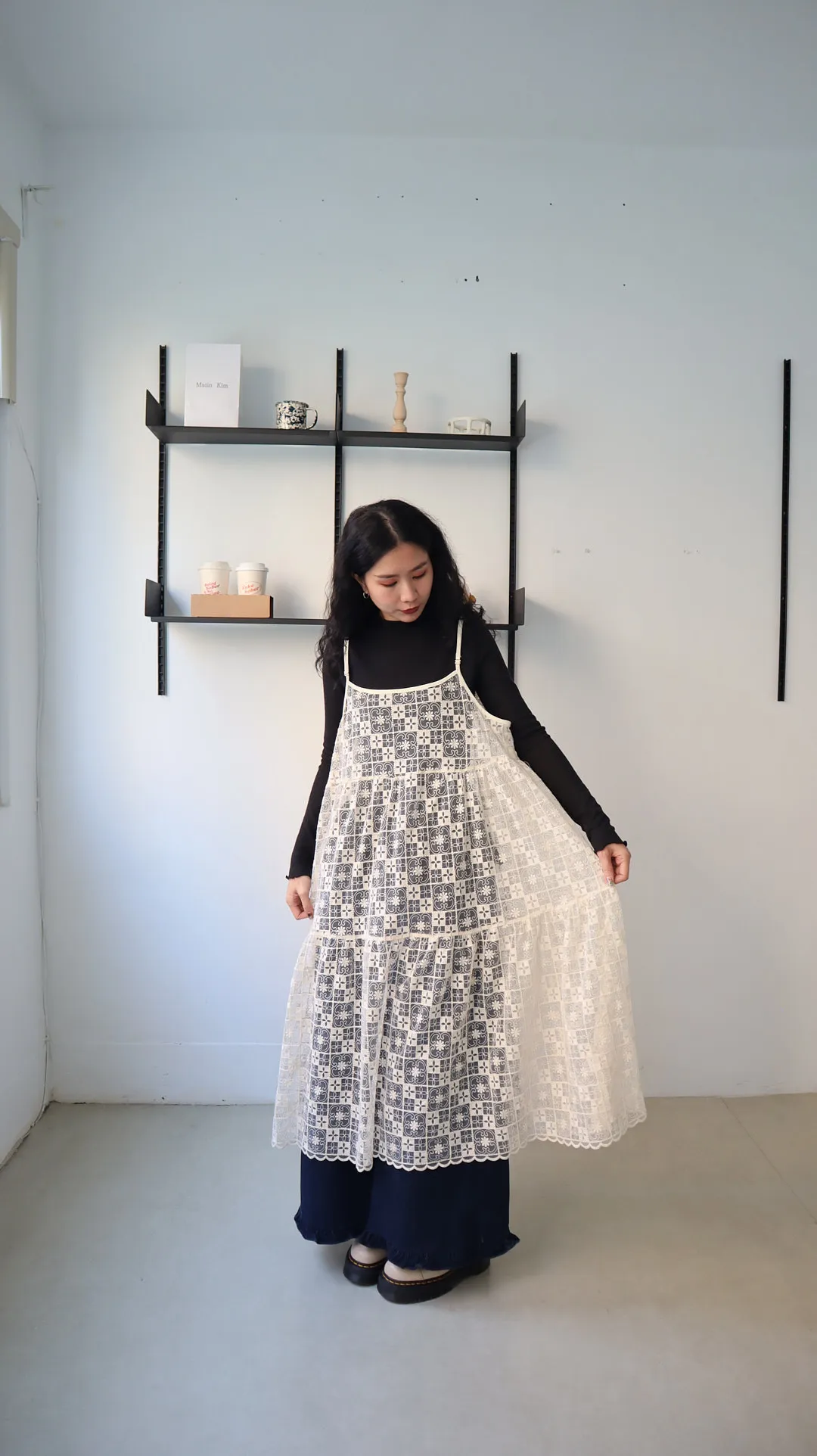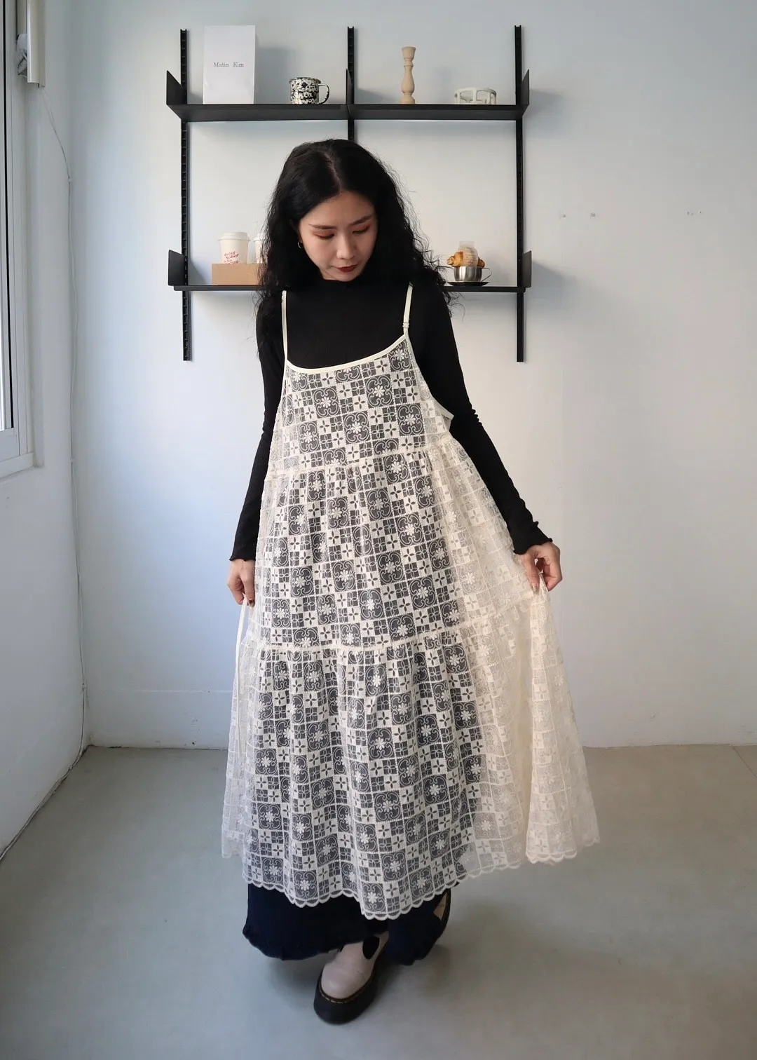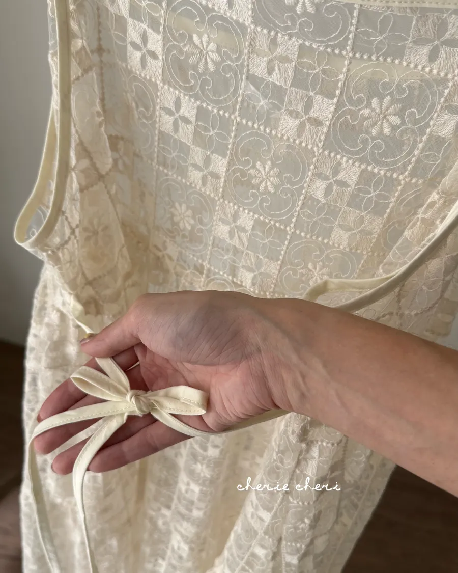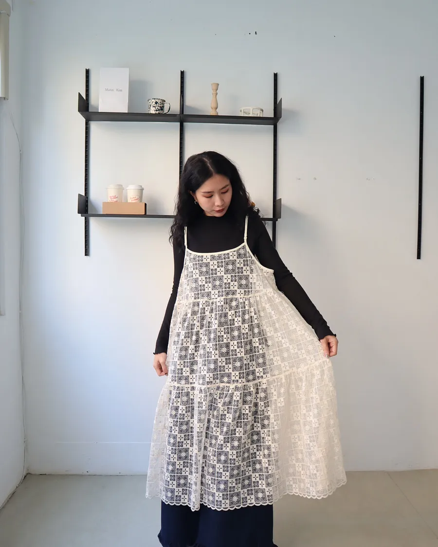 日系層次系幾何刺繡蕾絲罩衫