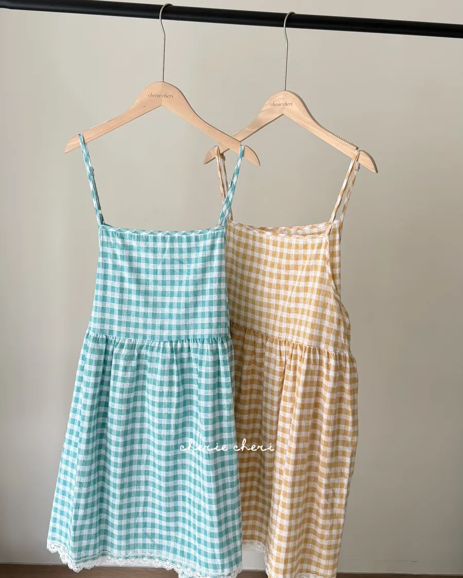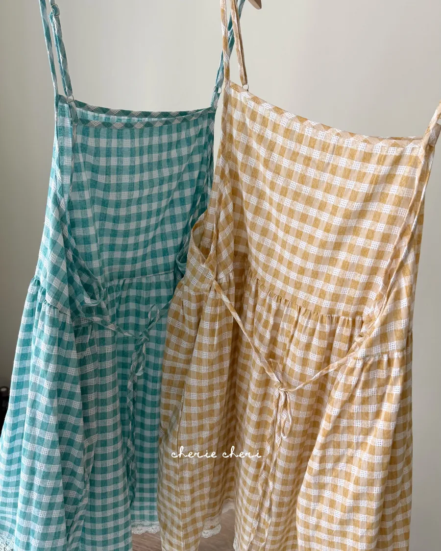日暮格紋細肩洋裝 兩色