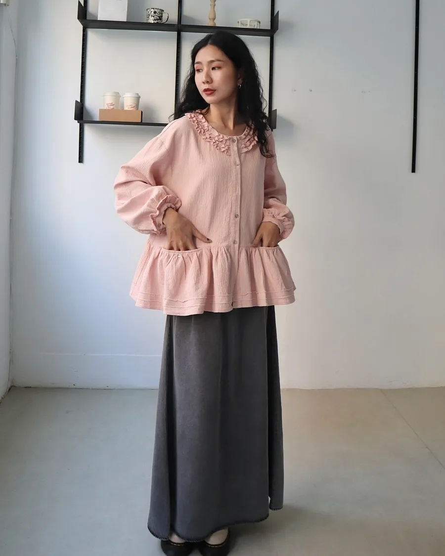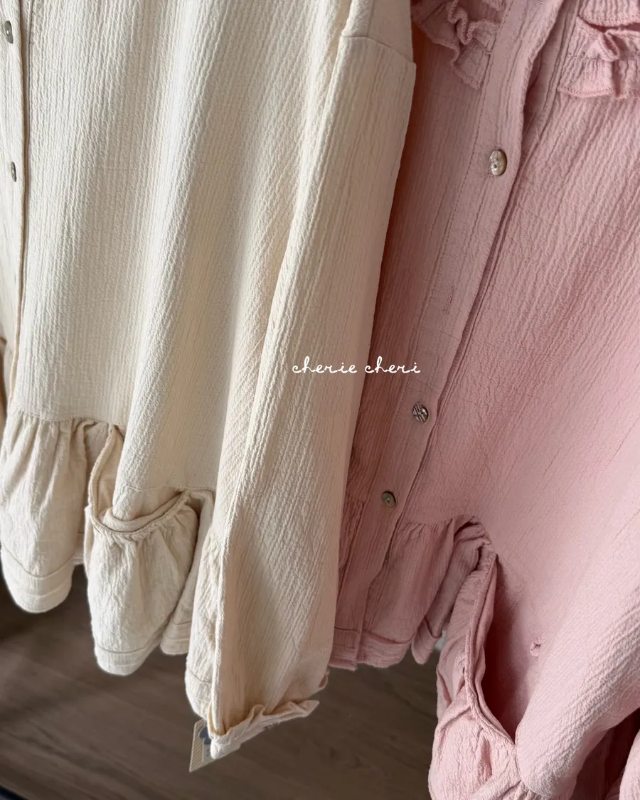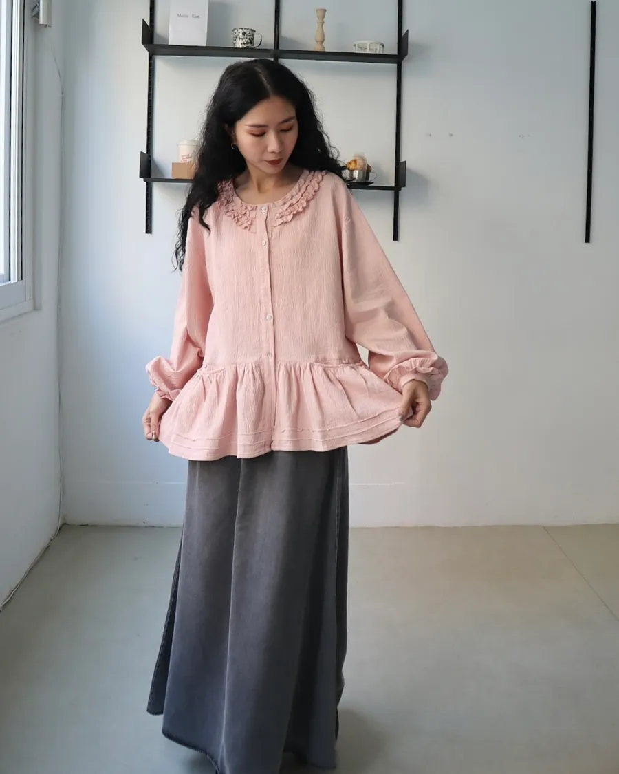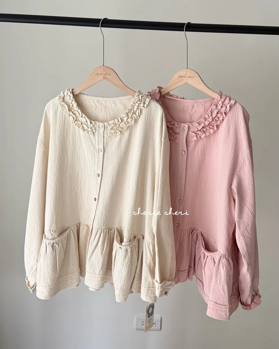 棉麻木耳邊小清新上衣 兩色