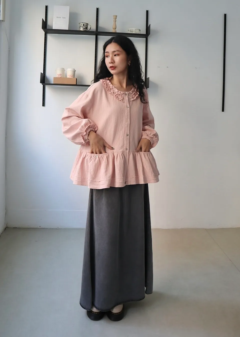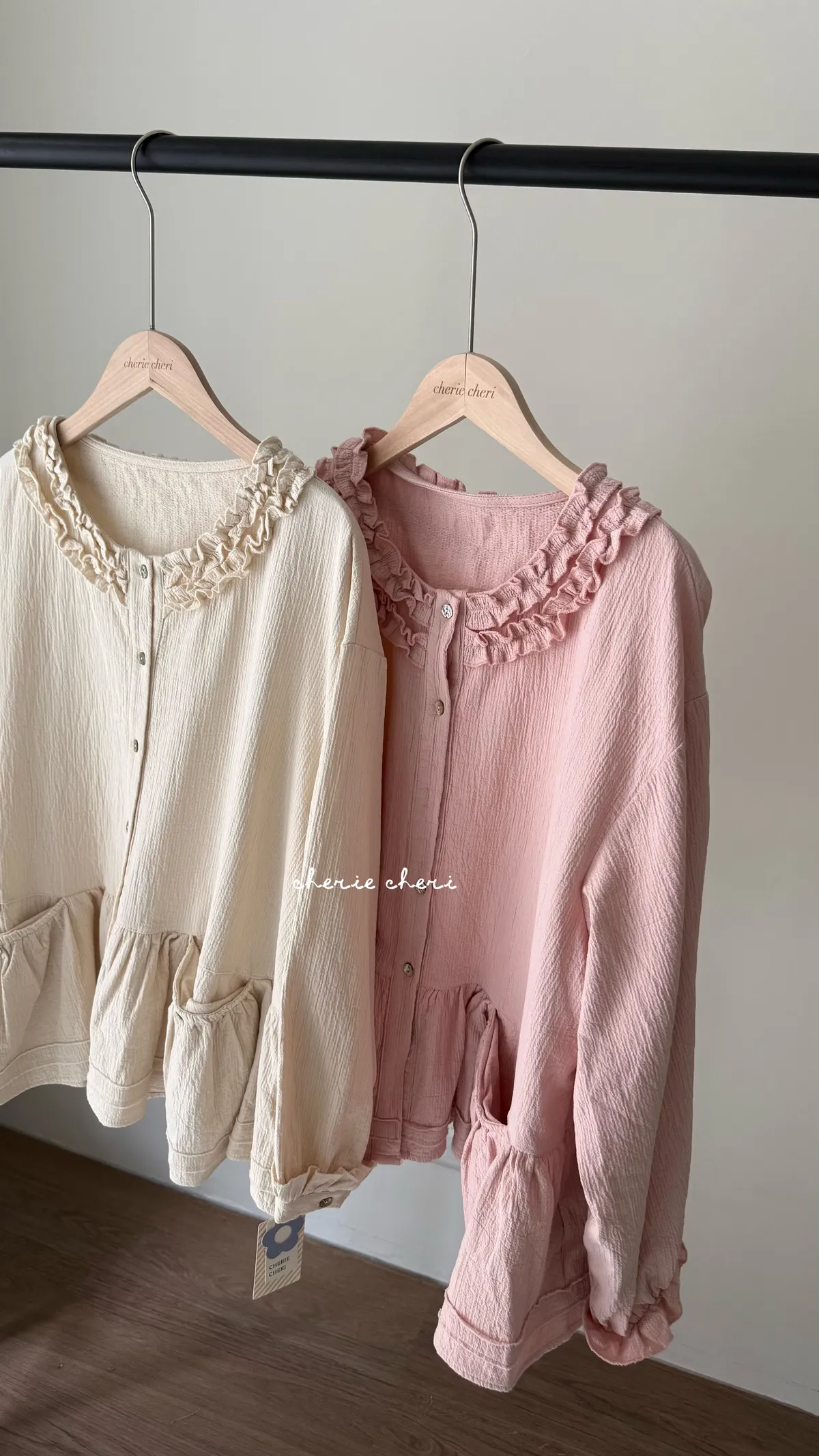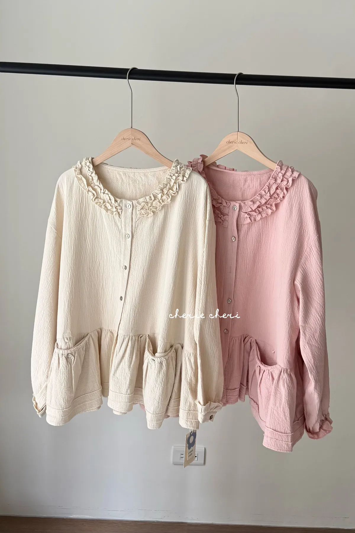 棉麻木耳邊小清新上衣 兩色