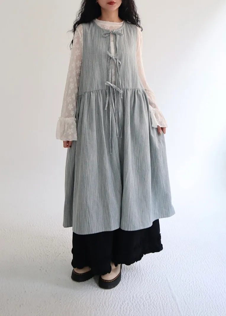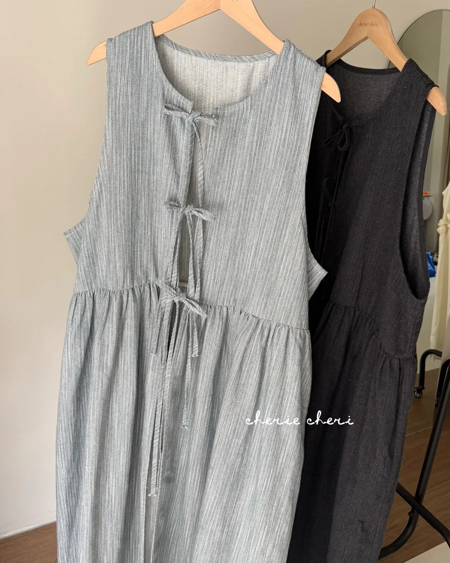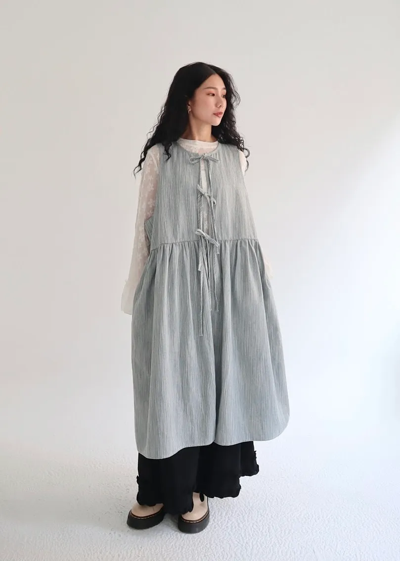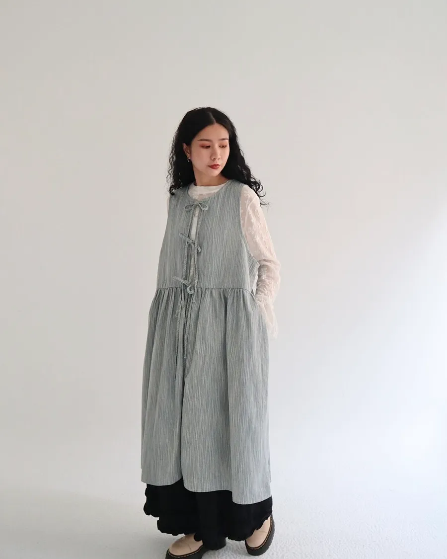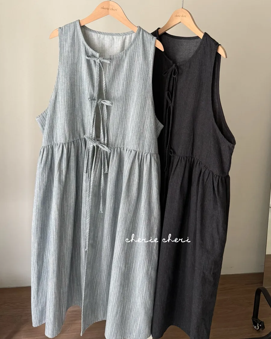 日系條紋綁帶外罩背心裙 兩色