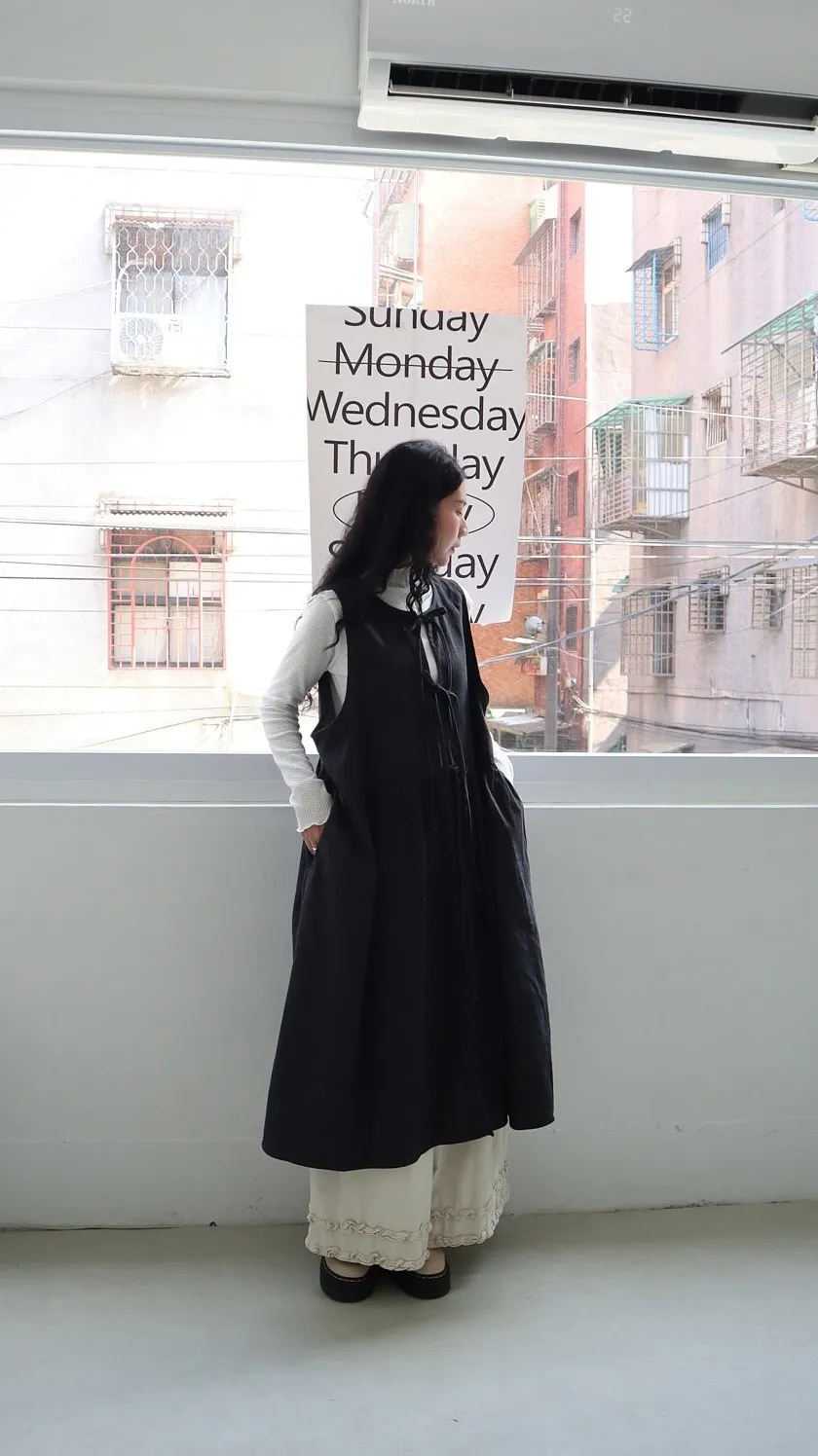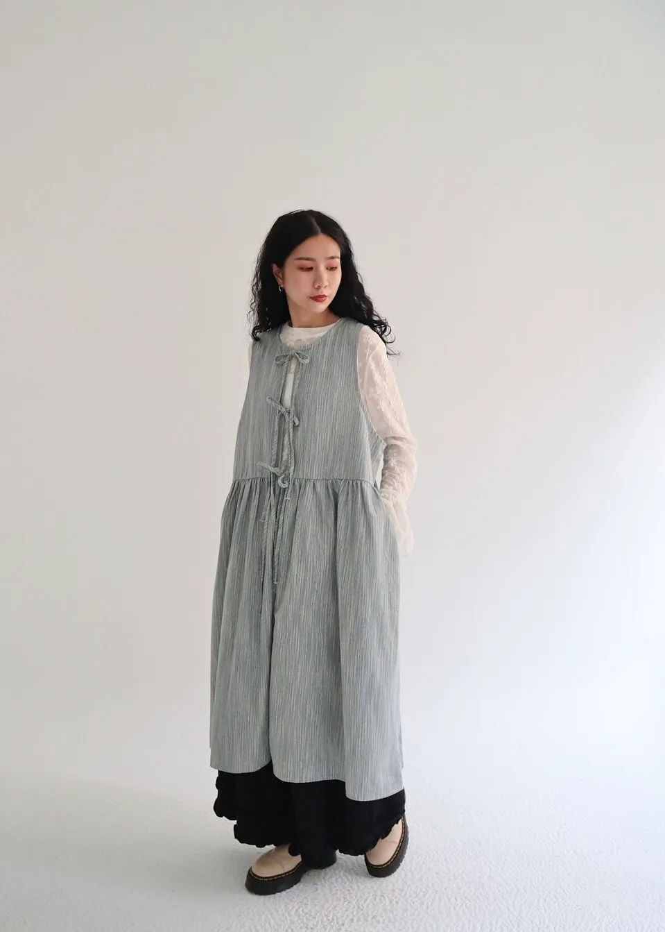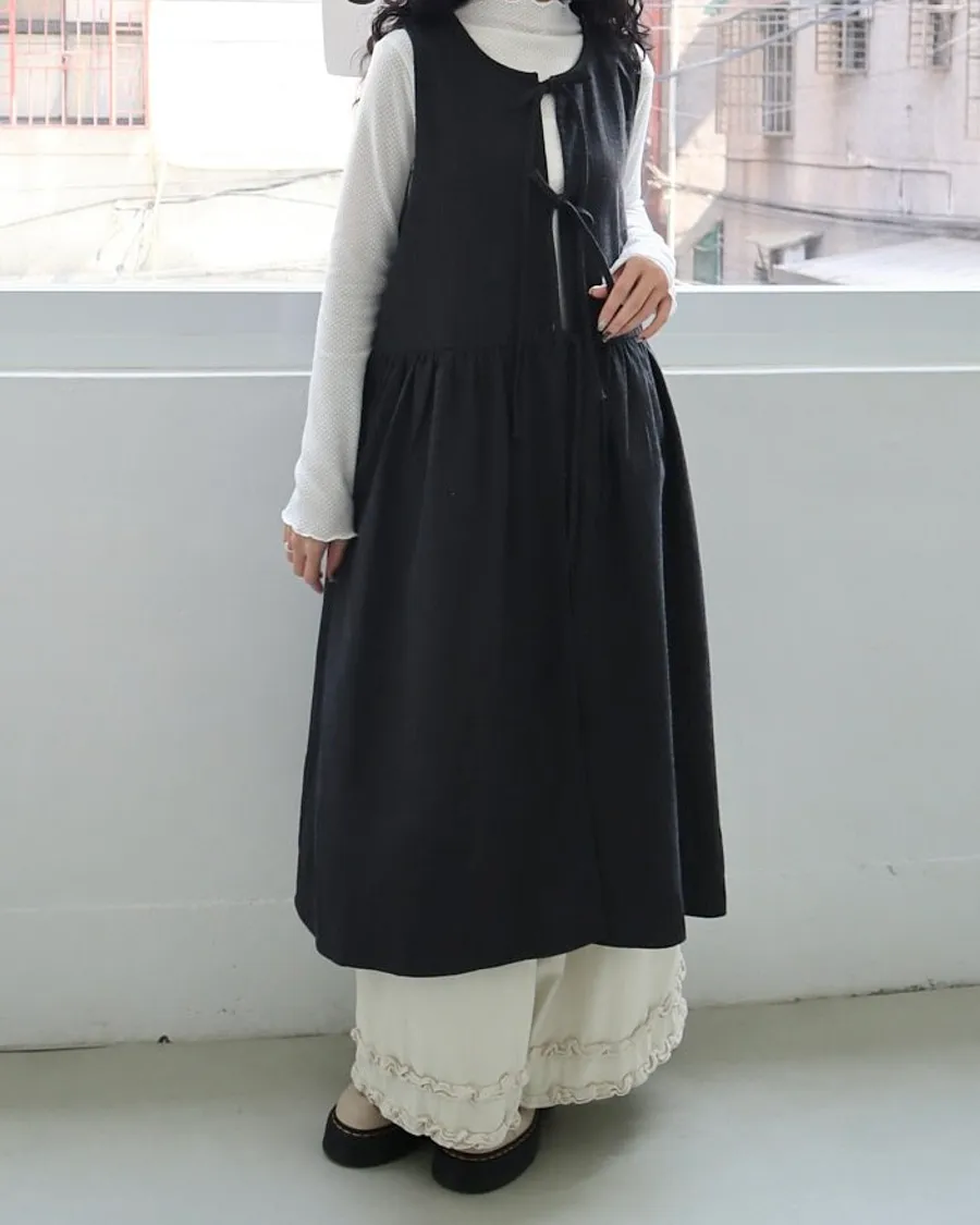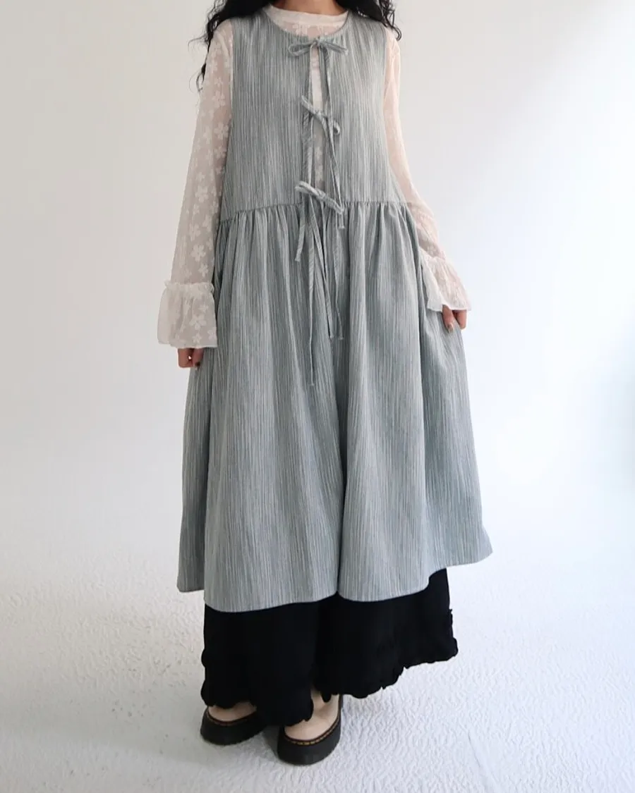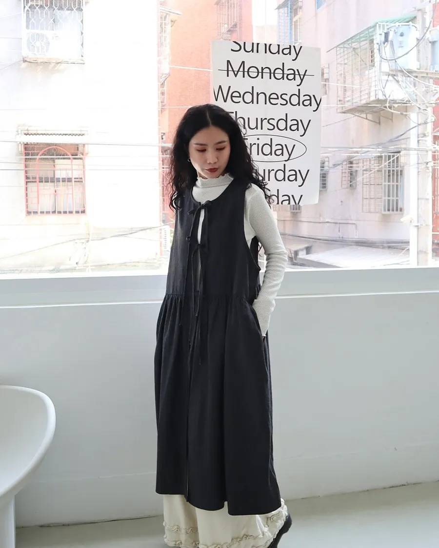 日系條紋綁帶外罩背心裙 兩色