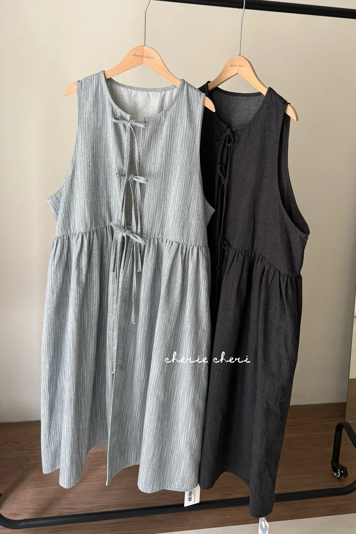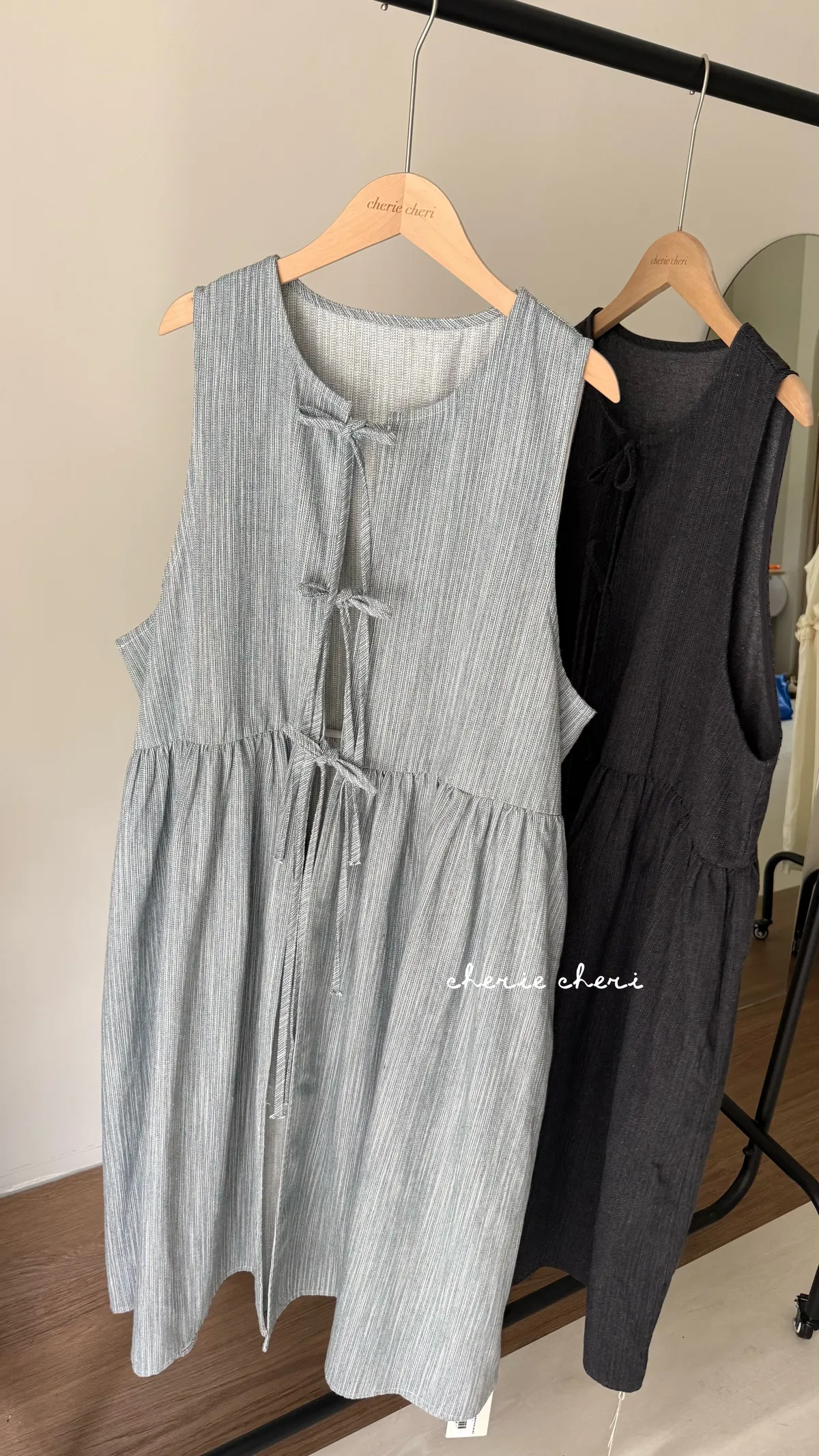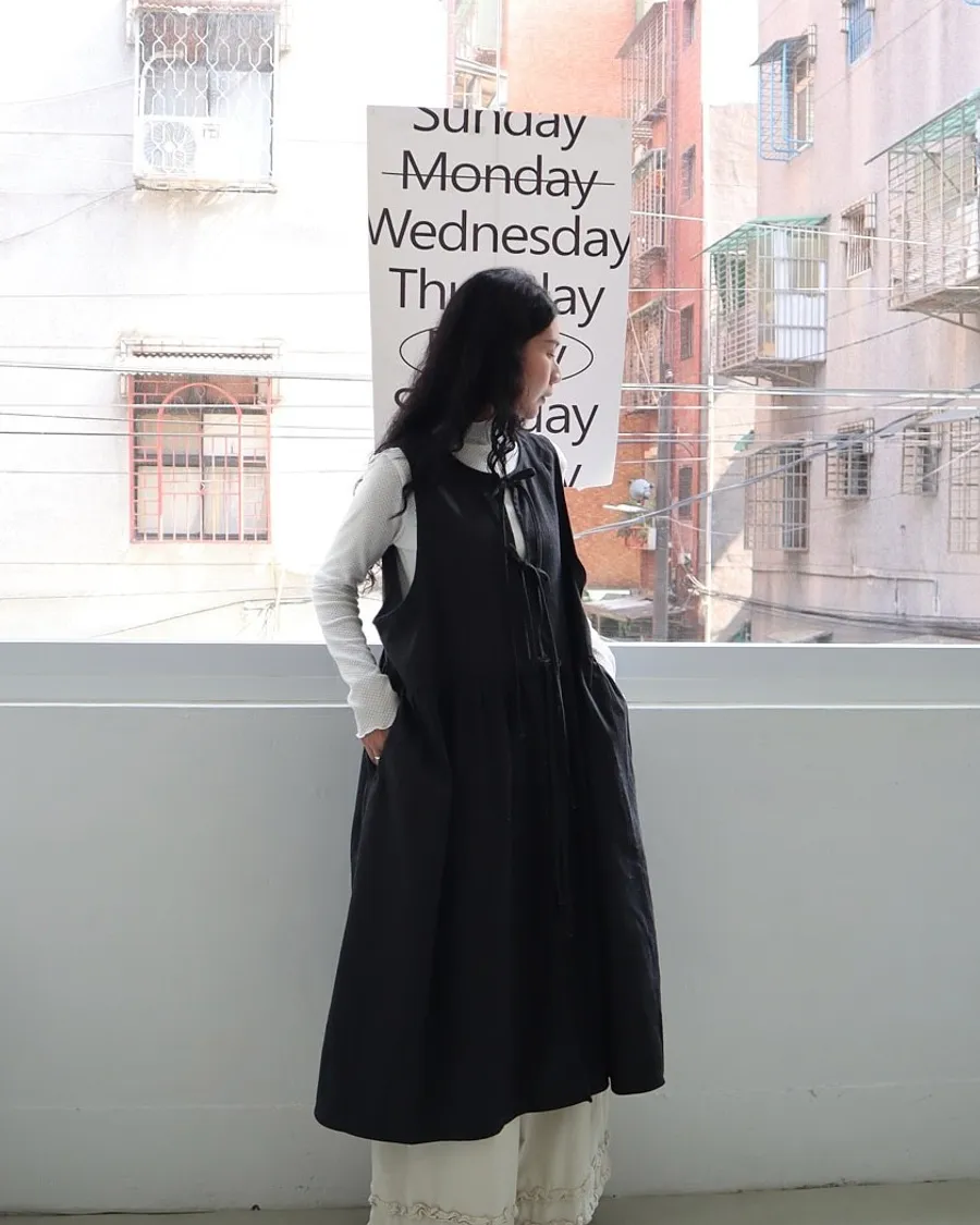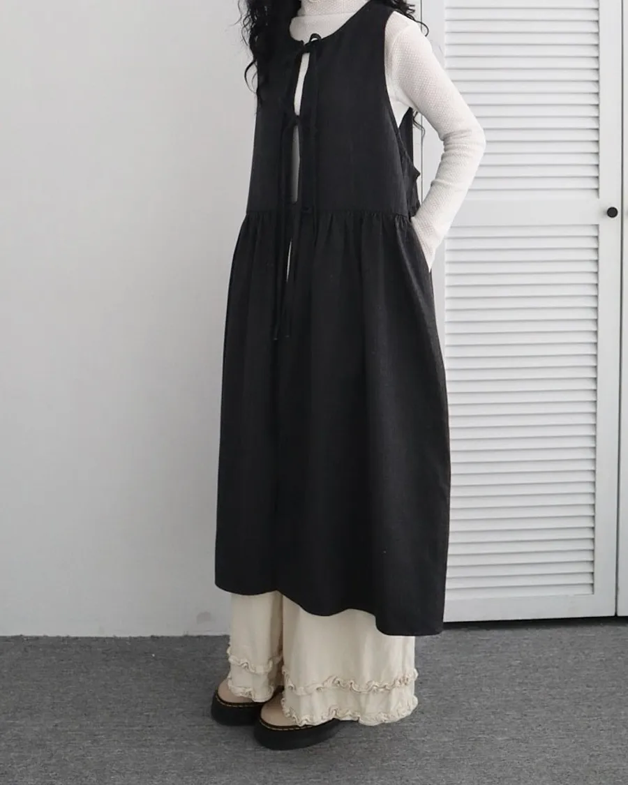 日系條紋綁帶外罩背心裙 兩色